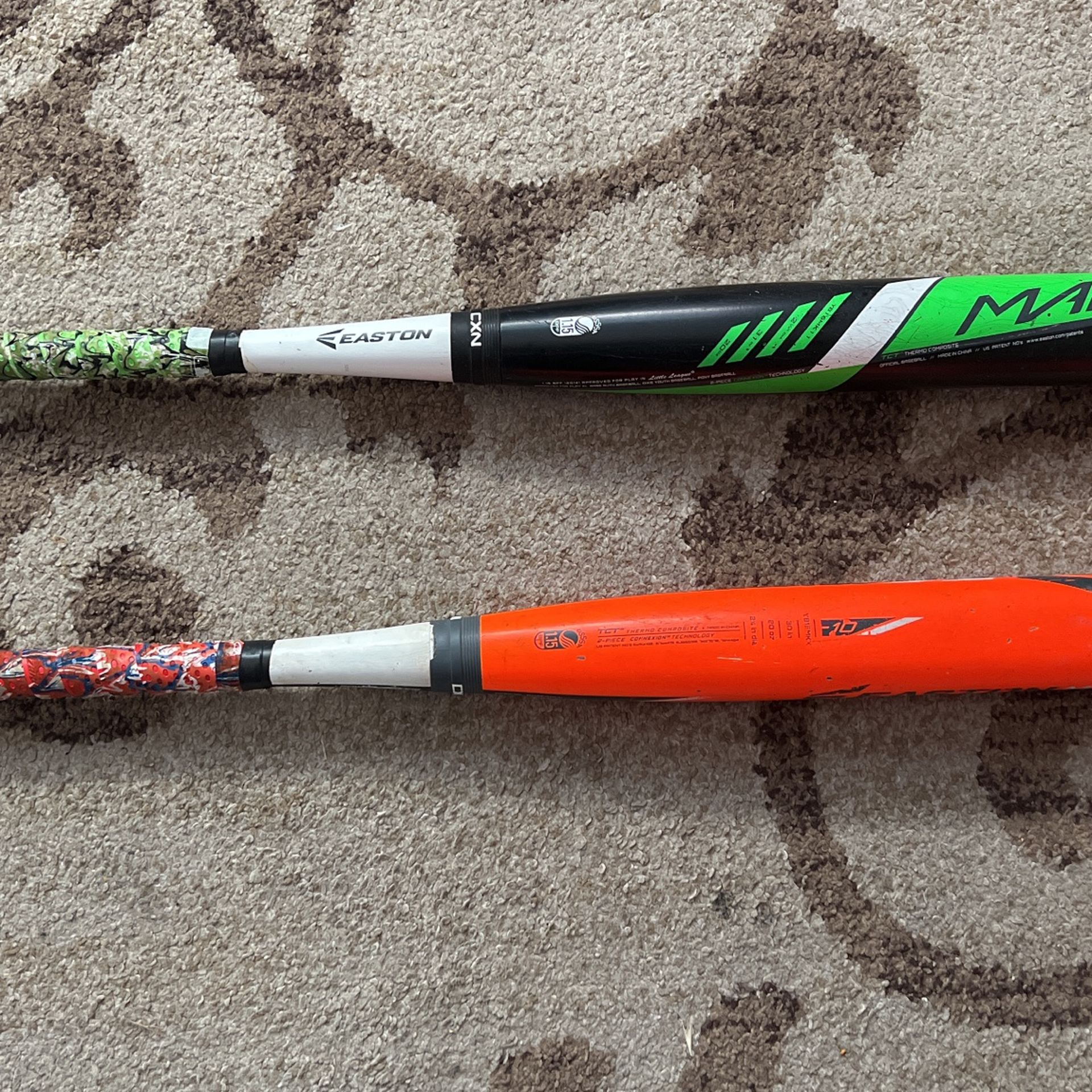 Selling Two Mako bats kid’s grew out of them in good condition with lots of pop. Orange is a 30in 20oz , Green Mako is a 31in 20oz Two piece Thermo Composite. $80 each