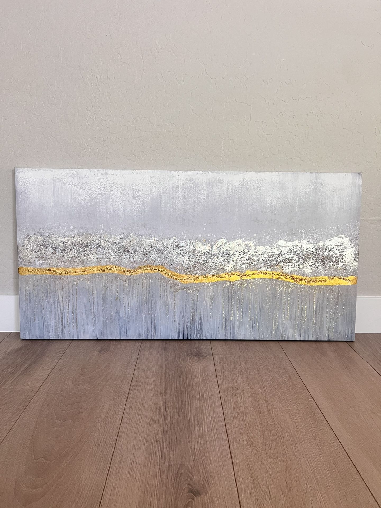 Perfect condition large canvas wall Art, Artwork, wall decor! I have so many wall pictures for sale. 48x24- 4 feet by 2 feet-Extra LARGE Blue/Grey and Silver/Gold Foil/Glitter Textured Canvas Wall Art, Wall Decor Artwork. Framed wall art, GLAM artwork, wall decor, wall art, wall picture, framed art. In perfect condition. Im also selling a similar matching 24x36 piece of artwork for $40 that goes so well with this piece! It’s in the last pictures! Will sell both together for $90! 47.25 width, 23.25 height, 1.5 depth I’m selling multiple household items, furniture and home decor. Check out my other listings! The more you buy, the more you save!!