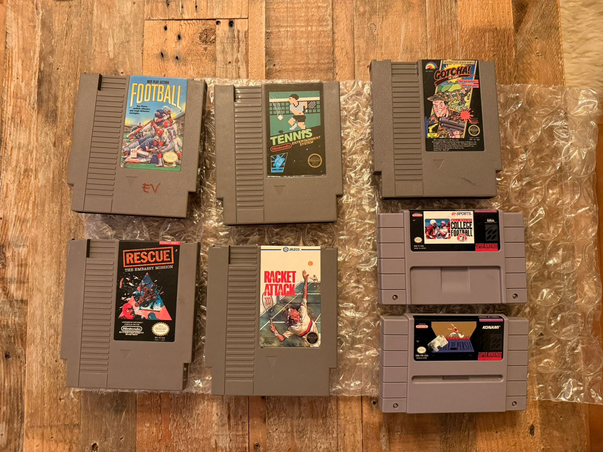 I have 7 total Nintendo games for sale: 5 NES and 2 Super Nintendo. All games and in working order and good condition. I am not selling any consoles or other games at this time.