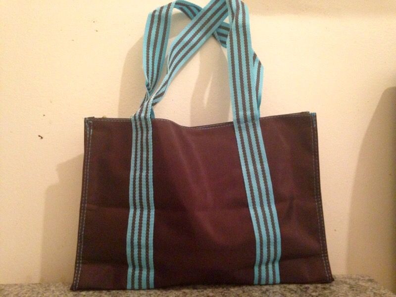 Brown and Turquoise Nylon Bag
