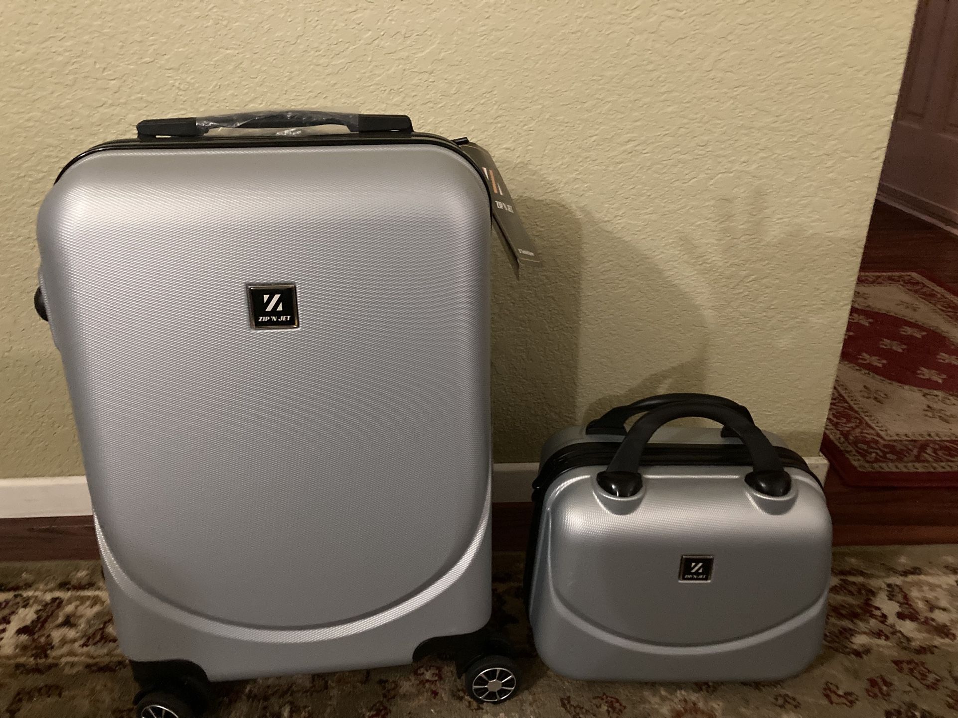 Zip N’ Jet Set Hardshell 18” silver gray Suitcase and Makeup case 10.5"x12" New