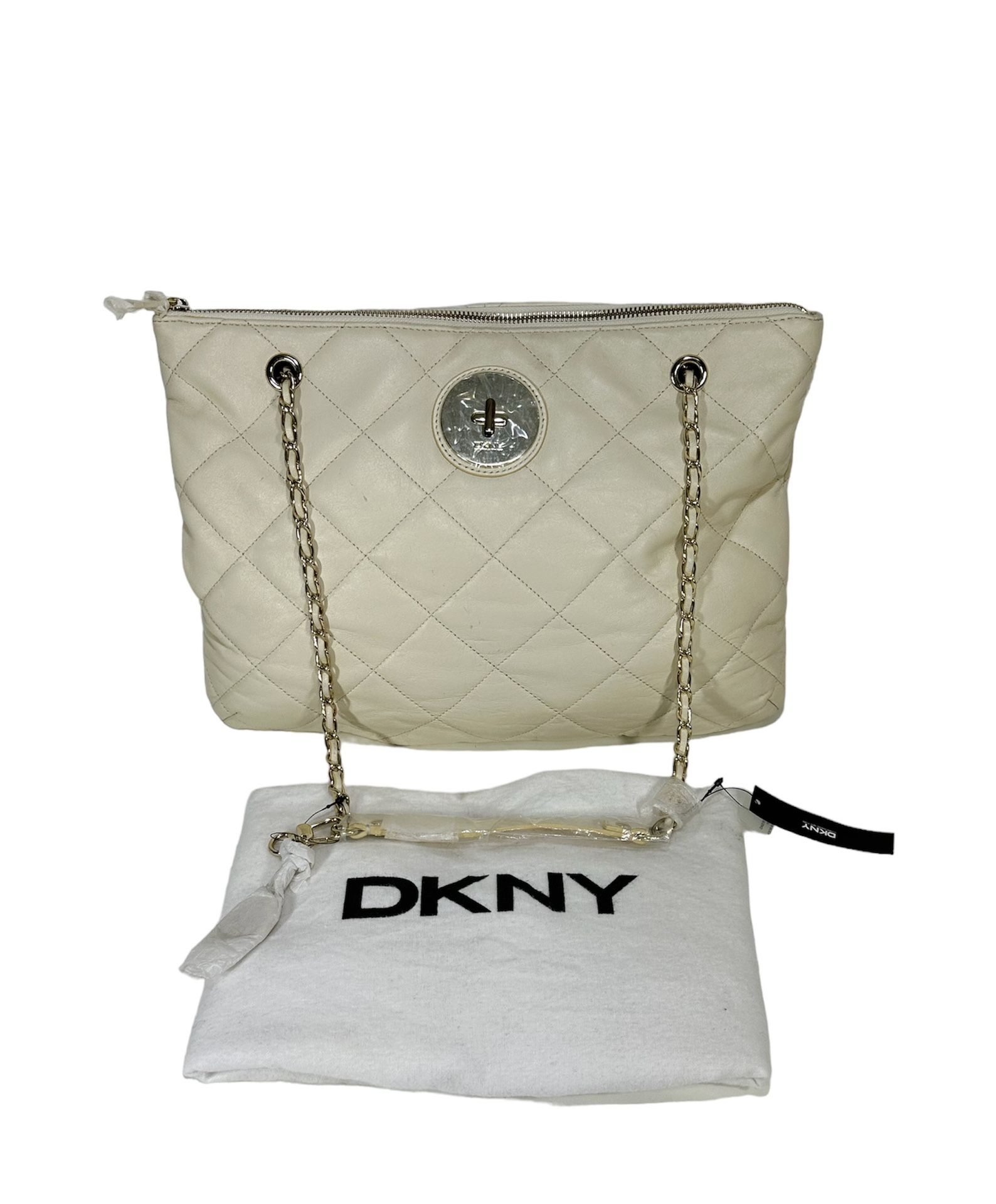 DKNY Women's Leather Ivory Quilted Nappa Shoulder Bag w/ Chain & Leather Strap