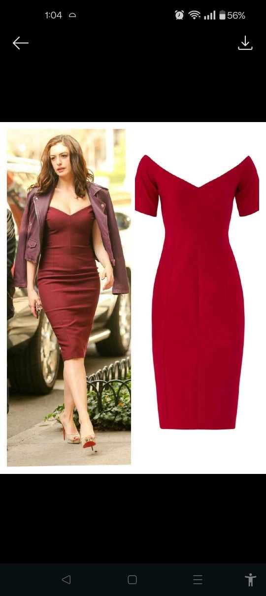 New without tags, cost $385. Worn by Ann Hathaway in movie Oceans 8 and other actresses. Crimson Red, sheath body contour midi dress, off the shoulders, deep V front and back, fully lined, slit in back, size 10