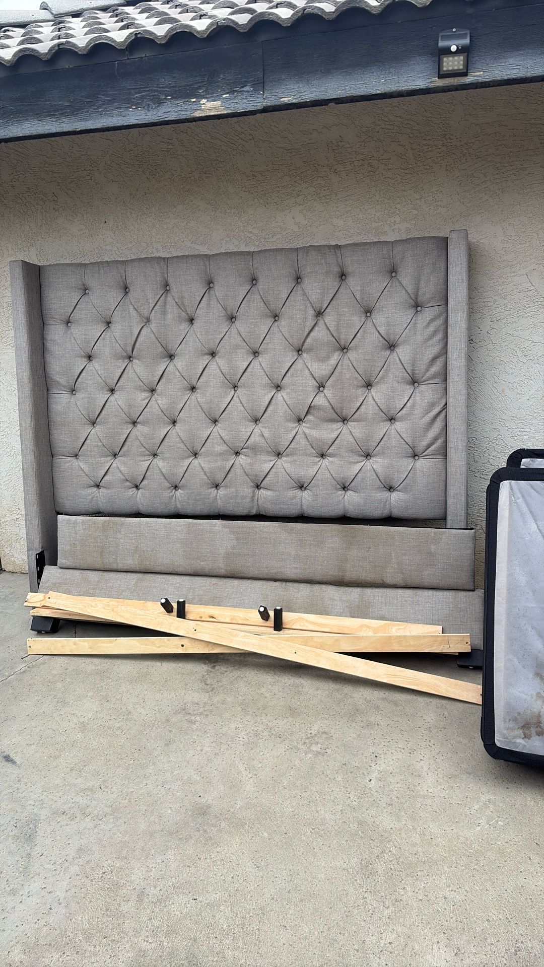 King size bed frame ( needs minor wash on footing area . Bought new one no need for this one . 120