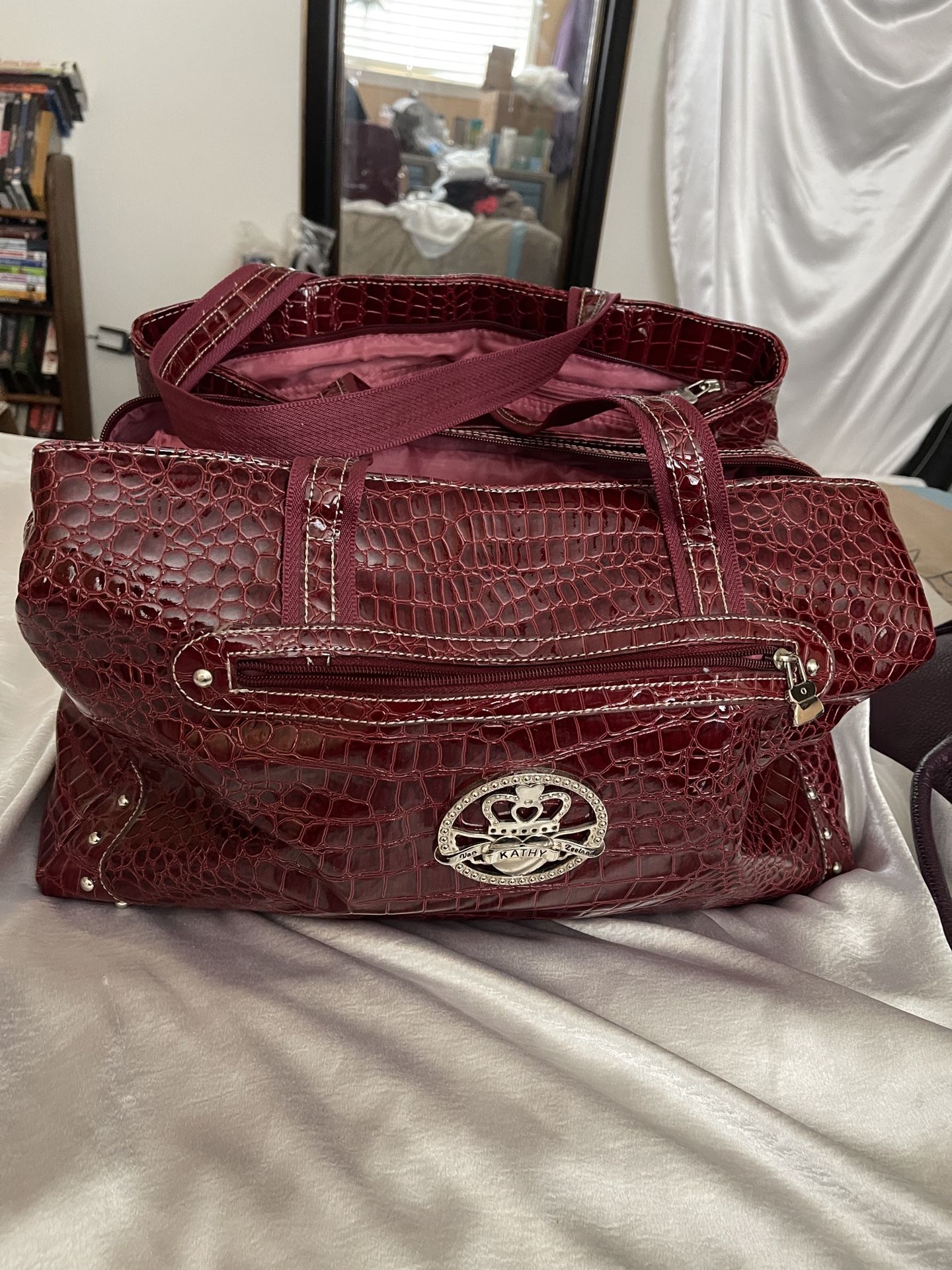 Kathy Van Zeeland Croco PVC Designer Handbag - 16 Inch Dowel Bag Carry On Luggage - Lightweight Durable Travel Overnight Work Purse for Women (Burgend