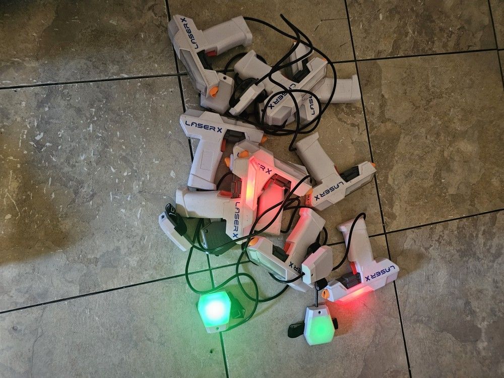 Hi I have set of 10 pairs Laser guns the sensor attached to the wrist. A very fun game for the kids especially for summer. All for $30 if you ask for delivery a fee of extra $5 in town