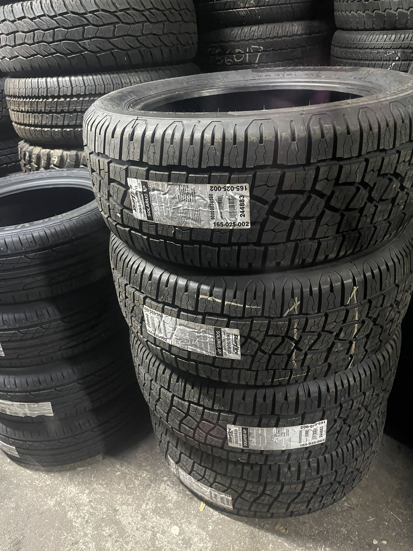 265/50/20 Starfire 265/50R20 NEW set of matching 4 tires 180$ EACH TIRE plus tax. Mount balance included!!! Wheel alignment available but not included. City tires 1676 Stuyvesant ave Union NJ 07083 (contact info removed) (contact info removed) Please call for quote on your tire size . Hundreds of used and new tires and wheels in stock .