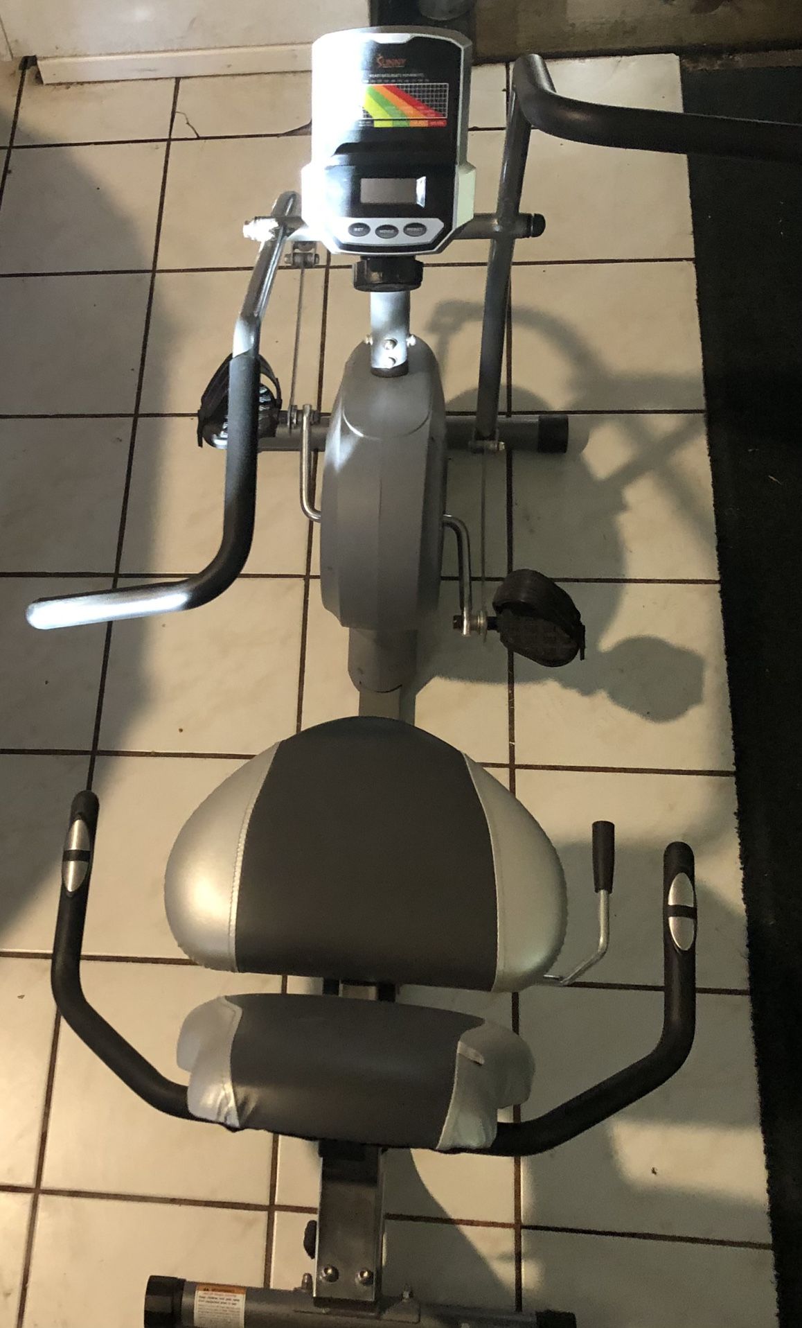 Works out your legs & arms as you peddle while sitting on a comfortable padded seat & back rest very good for cardio when you feel like riding the bike but don’t want to leave home