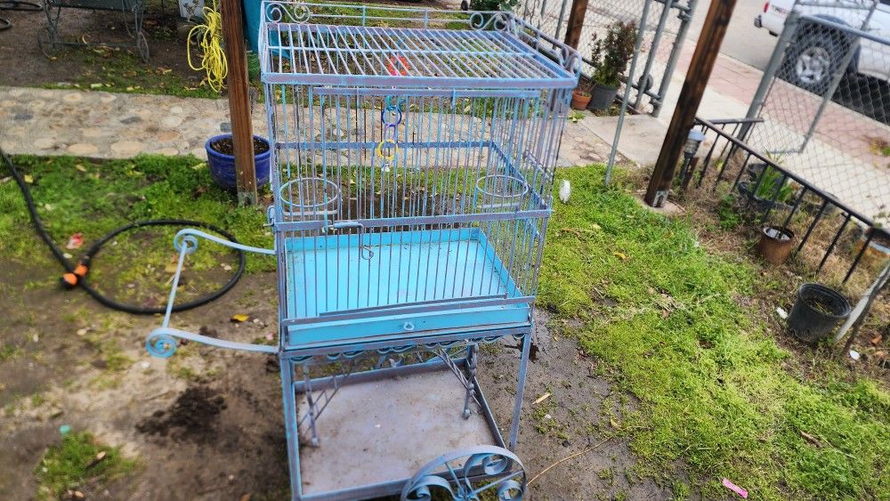 Local only. Pick up $100 If you are looking for a new home for your pet bird, this large bird cage is a great option. The cage is designed to be eye-catching and functional, providing your bird with a comfortable and secure place to call home. With the ability to listen to your bird's pleasing calls and watch its colorful feathers every day, owning a bird can be a fun and calming experience. The bird cage is built with quality materials and craftsmanship, ensuring its sturdiness and durability. It is suitable for a variety of bird species, including cockatiels, cockatoos, macaws, parakeets, budgies, lovebirds, parrots, pigeons, dove, finches, and quails. The cage's design also includes a small door for easy feeding, preventing your pet bird from escaping while still allowing you to access the inside easily.