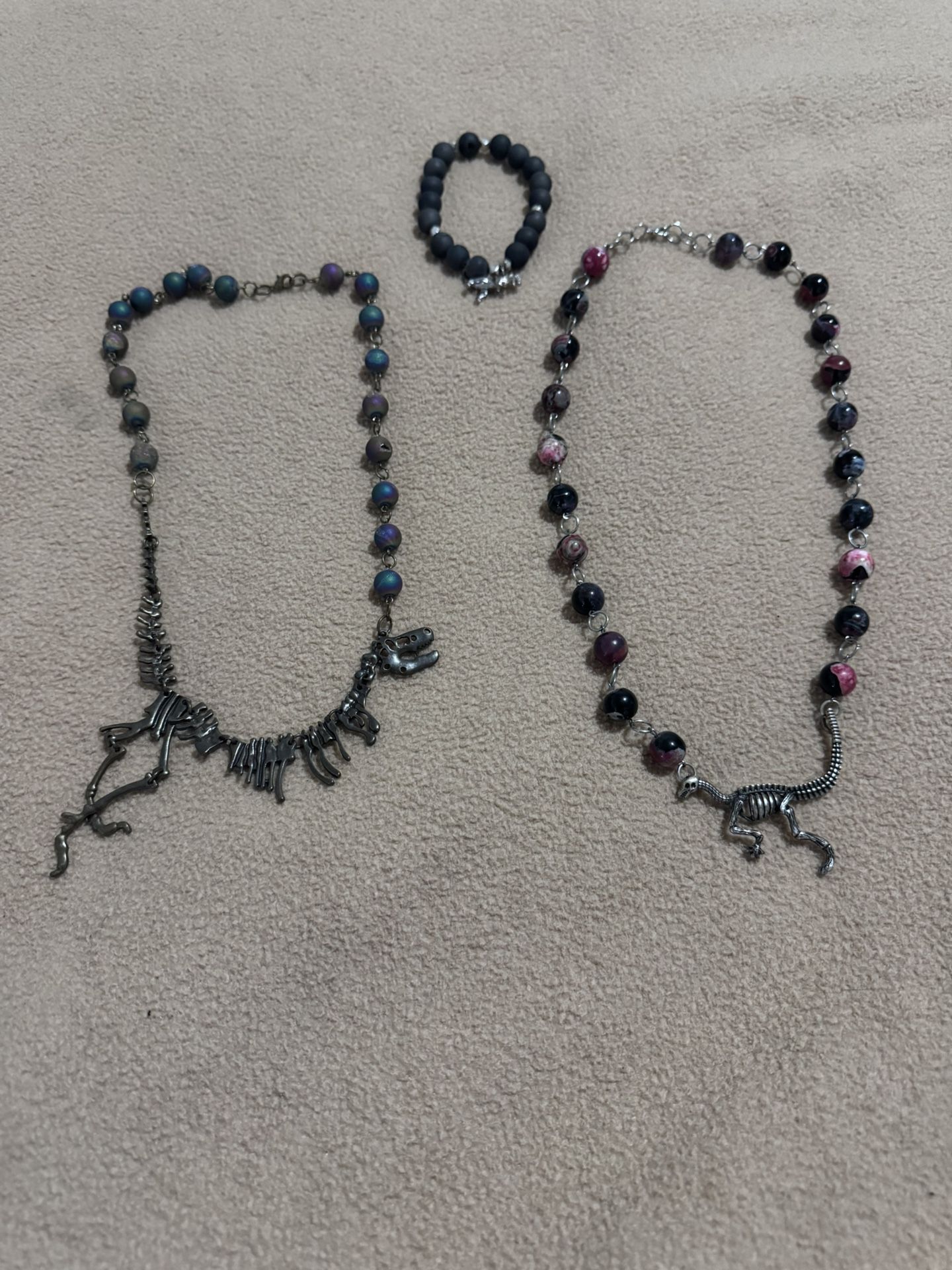 Super cute dinosaur necklaces and a bracelet for the Dino lover in your life, please ask any and all questions