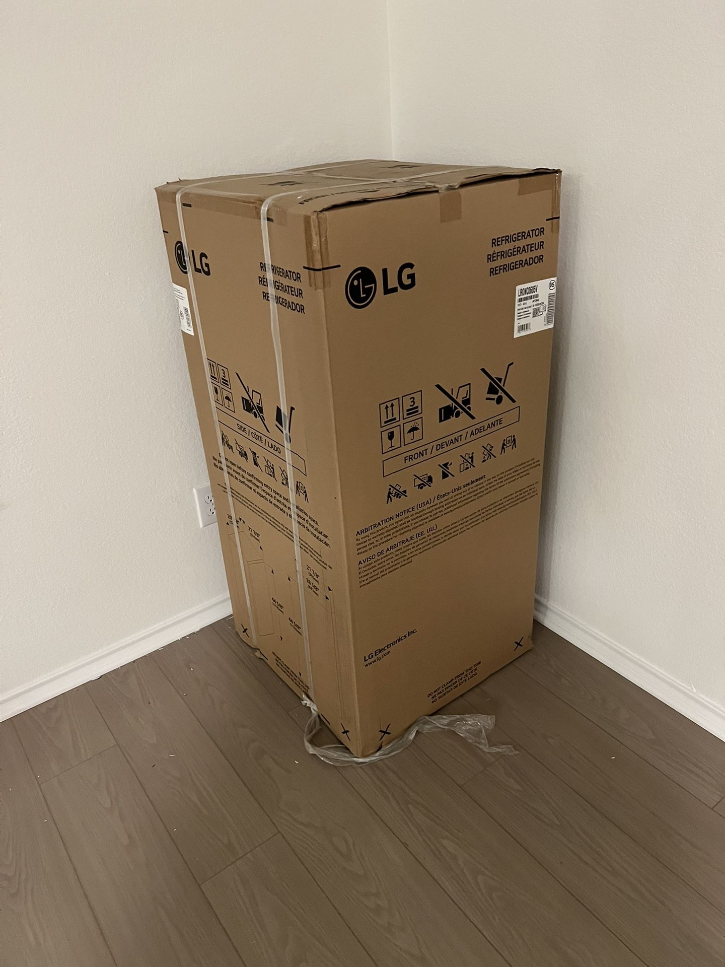 Brand new LG fridge which is still not opened. Still in factory packaging. Capacity is 6 cubic feet.