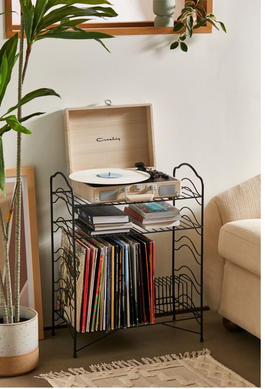 Sold out on the website! Features - Our classic record display shelf from UO Home - Top-rated vinyl record storage - Can fit up to 60 vinyl records - UO exclusive Content + Care - Iron - Wipe clean - Imported Size - Dimensions: 20"w x 11.5"d x 26"h - Top-shelf height: 4.5" - Record shelf height: 14" - Shipping package dimensions: 21.65"l x 13.39"w x 27.95"h - Shipping package weight: 10 lbsFeatures - Our classic record display shelf from UO Home - Top-rated vinyl record storage - Can fit up to 60 vinyl records - UO exclusive Content + Care - Iron - Wipe clean - Imported Size - Dimensions: 20"w x 11.5"d x 26"h - Top-shelf height: 4.5" - Record shelf height: 14" - Shipping package dimensions: 21.65"l x 13.39"w x 27.95"h - Shipping package weight: 10 lbs