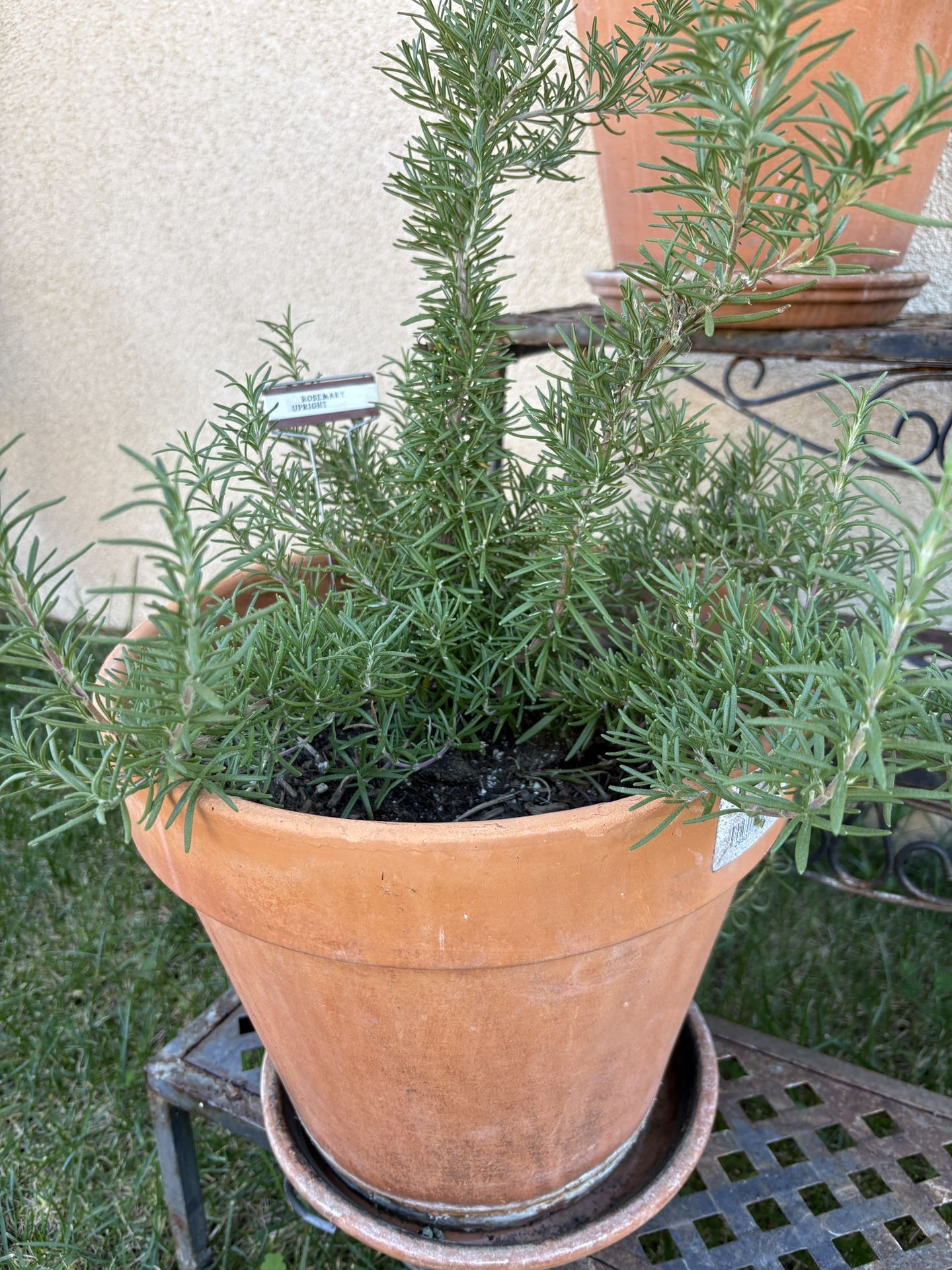 Rosemary Plant In Terra Cotta Pot and Dish