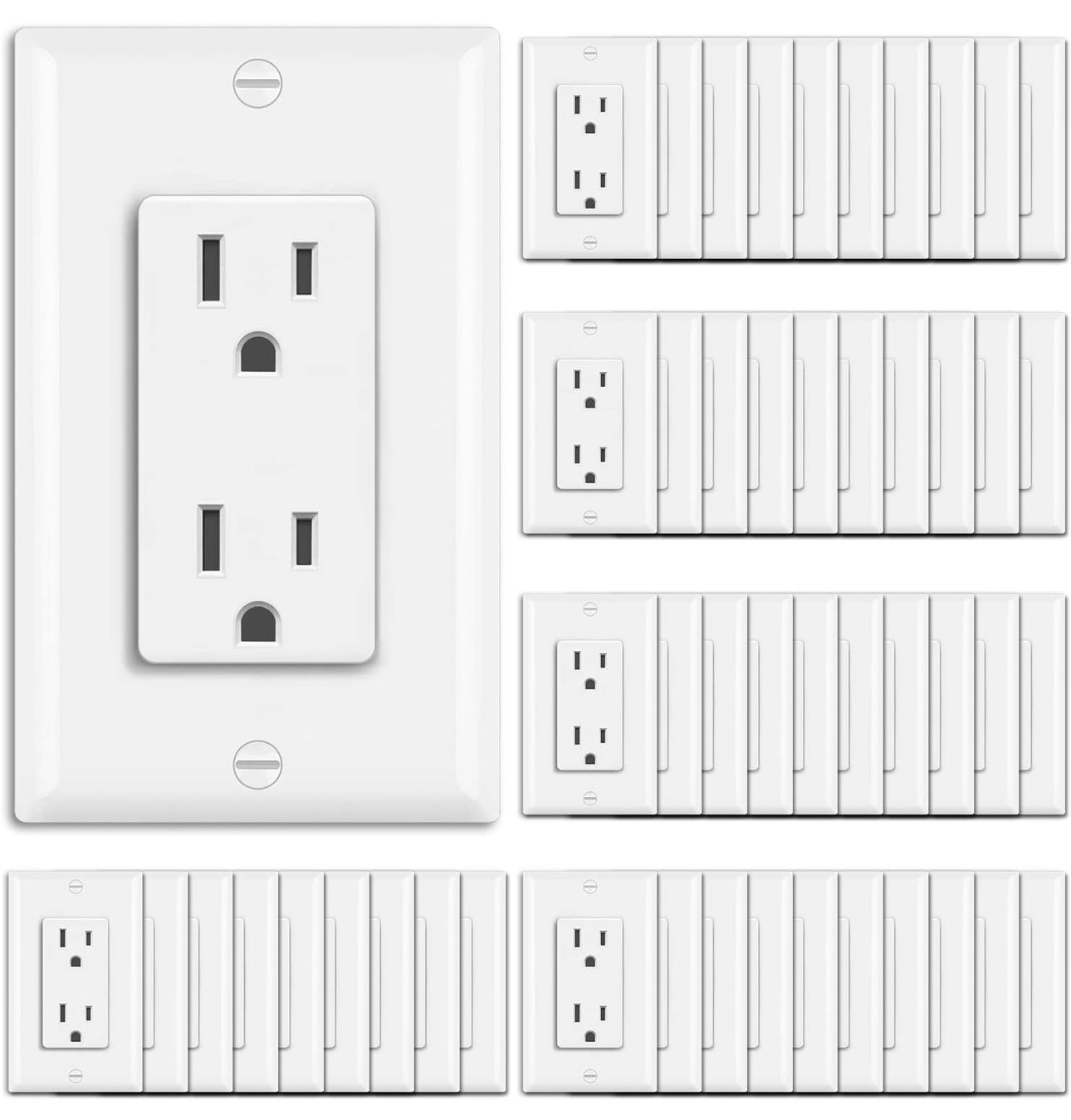 Brand new BESTTEN Decorator Receptacle Outlet, 15 Amp Electrical Wall Outlet, Non-Tamper Resistant, Decor Wallplate Included, 15A/125V/1875W, UL Listed, 50 Pack, White