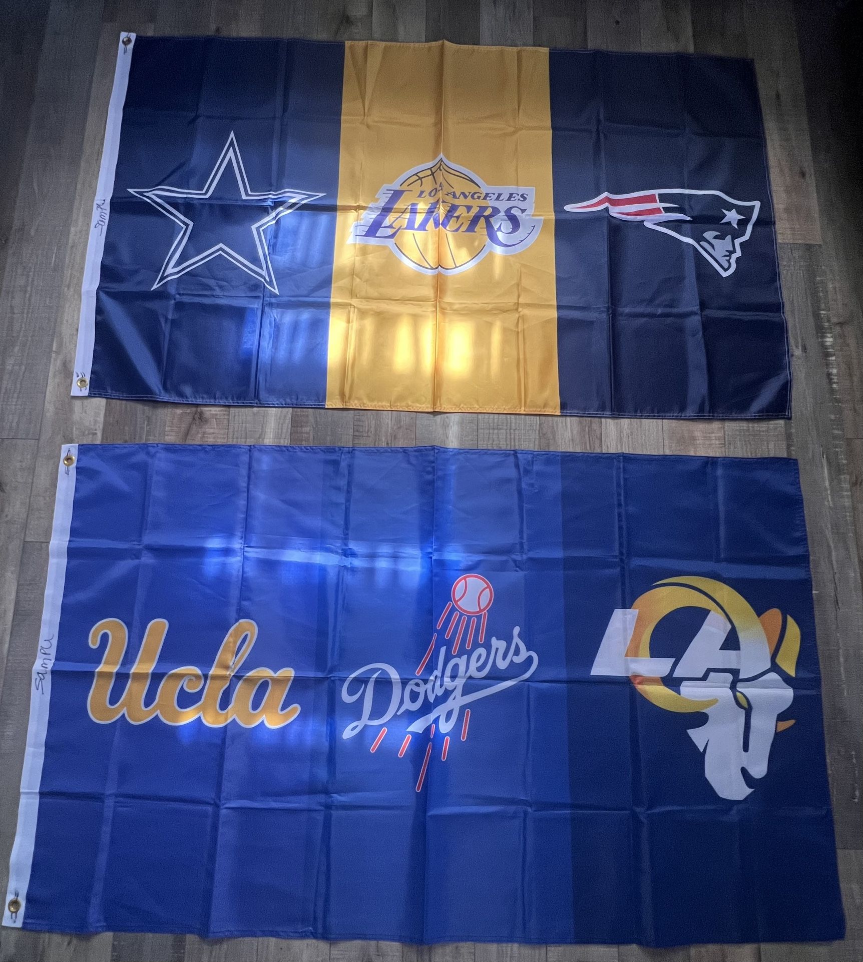 Used Flags Size 3ftx5ft COWBOYS LAKERS PATRIOT AND UCLA DODGERS RAMS