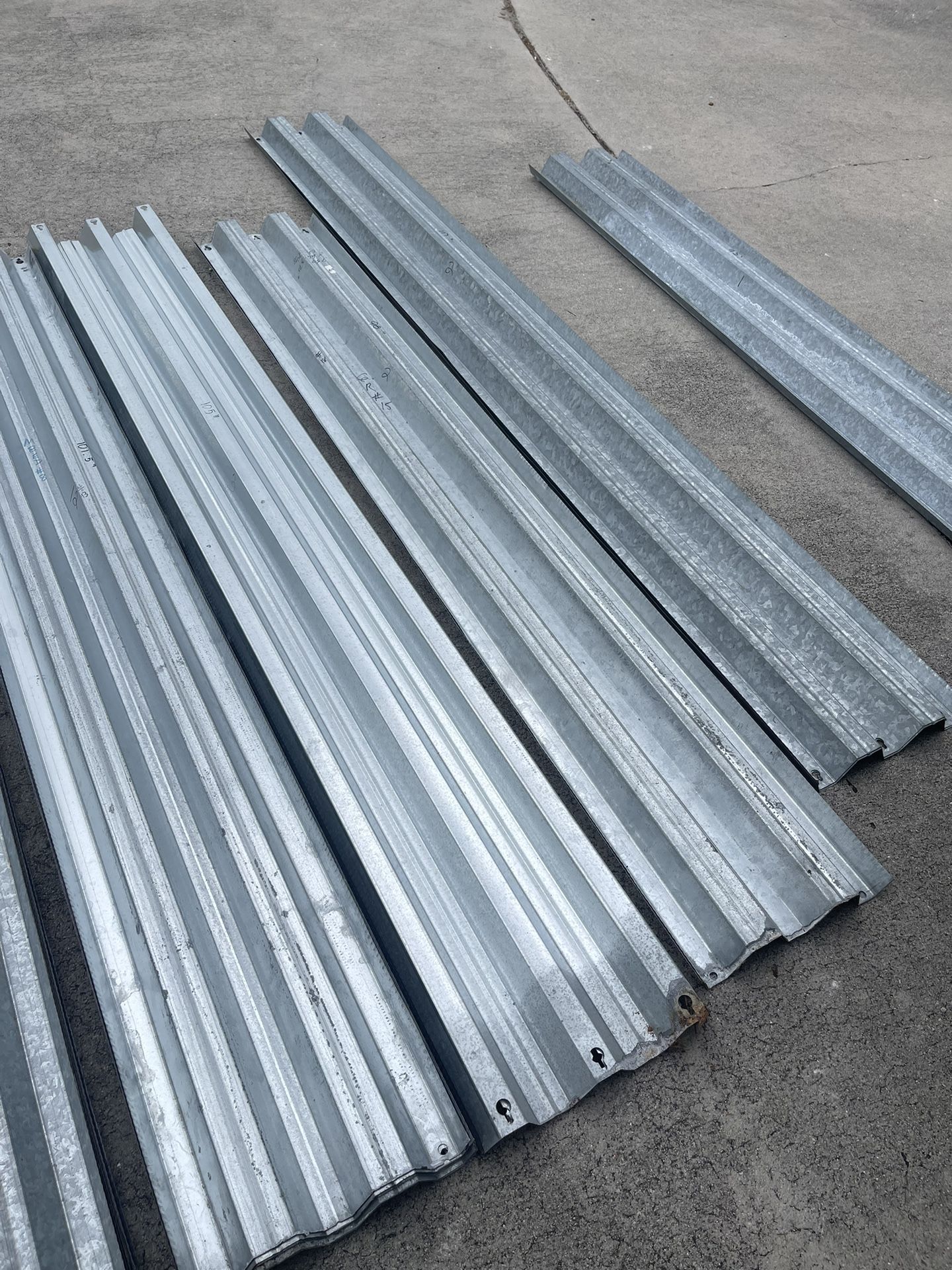 I have steel panels for sale $15 each panel no matter what size I have 4 panels 33-1/2 inches 14 panels 26-1/2 inches 5 panels 5’ inches 8 panels 7-1/2 inches 10 panels 6-1/2 inches 14 panels 100 inches 12 panels 101-1/2 inches 3 panels 105 inches 2 panels 98 inches Reasonable offers, for everything would be considered