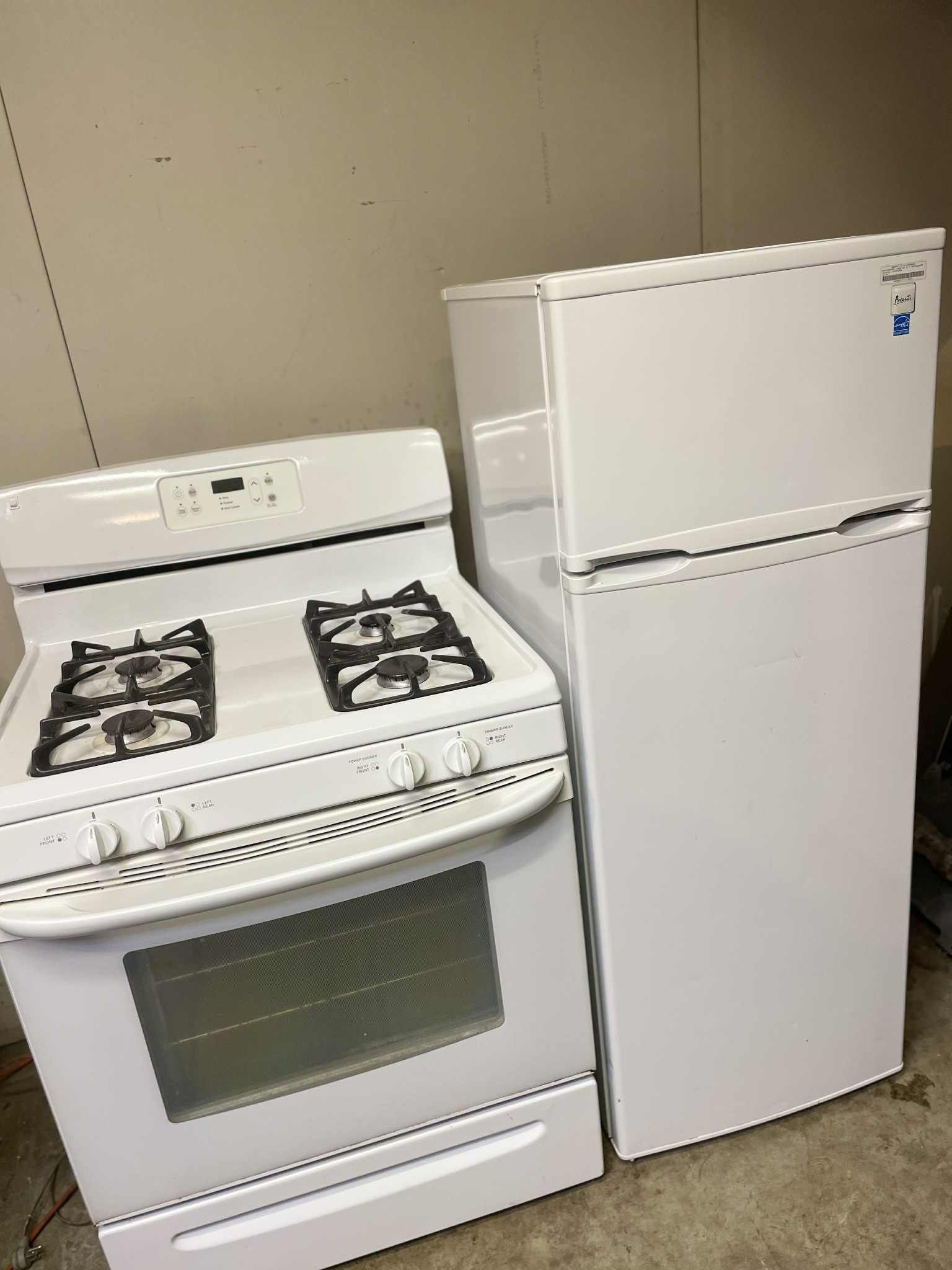 White gas stove 30”w with refrigerator 21”w 55”h both in working order 30 day warranty delivery and installation available for extra Refrigerador y estufa Blanca Los dos trabajando à la orden el refri mide 21”w 55”h y la estufa es standard 30”w 30 Dias de guarantia delivery desponible por extra