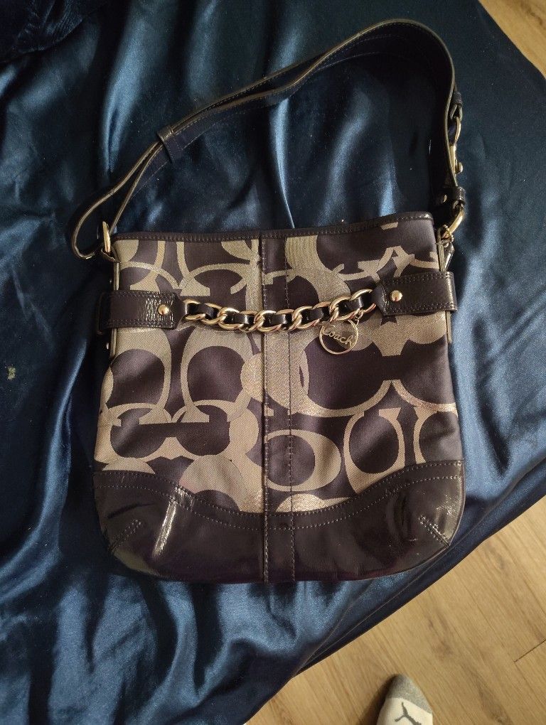 There's one small pink stain on it nothing wrong with the purse it's clean and like new