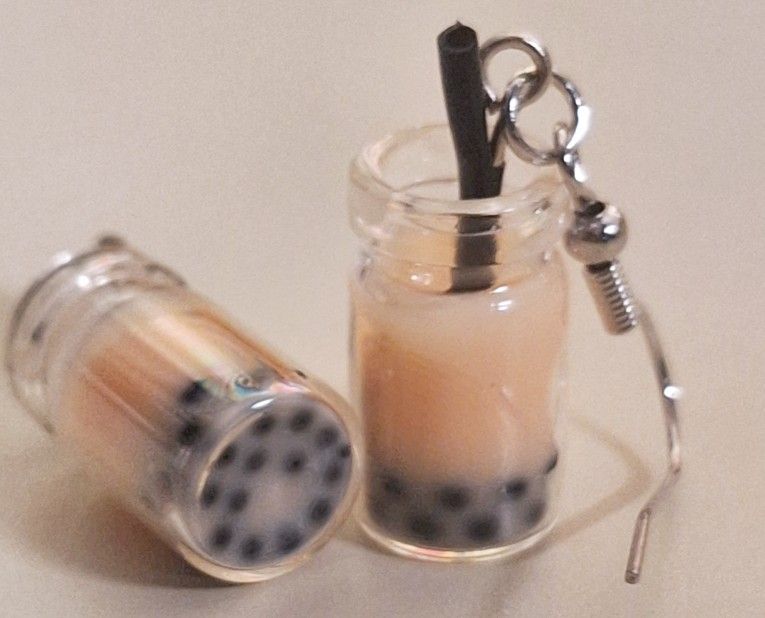 Brown Sugar Boba Handcrafted miniature Glass charm earrings are a unique blend of artistry and whimsy and handcrafted with care. Perfect for boba tea lovers and accessory enthusiasts, each pair is meticulously detailed to add a playful yet elegant touch to your style. Lightweight and comfortable, these earrings are sure to be a conversation starter! Excellent as a birthday present, anniversary gift, Mother's Day gift, Holliday gift, Valentines Day present, Graduation gift, and perfect for many other occasions! Earrings Boba charm jewelry handcrafted gift mizrulestudio