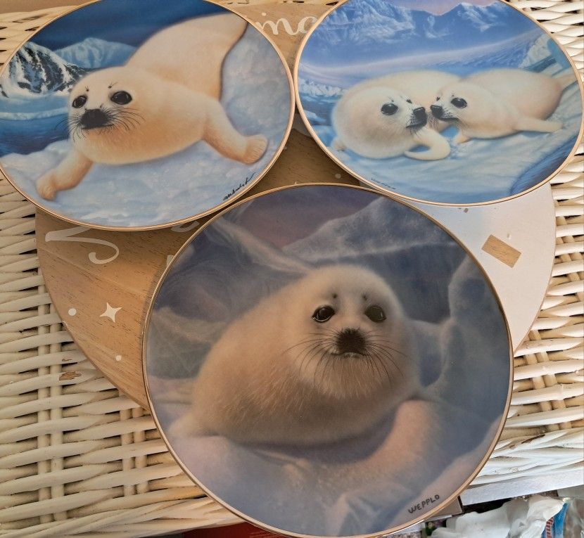 Set of 3 adorable seal pups from the Franklin Mint. Mint condition. All are trimmed in 24kt gold.