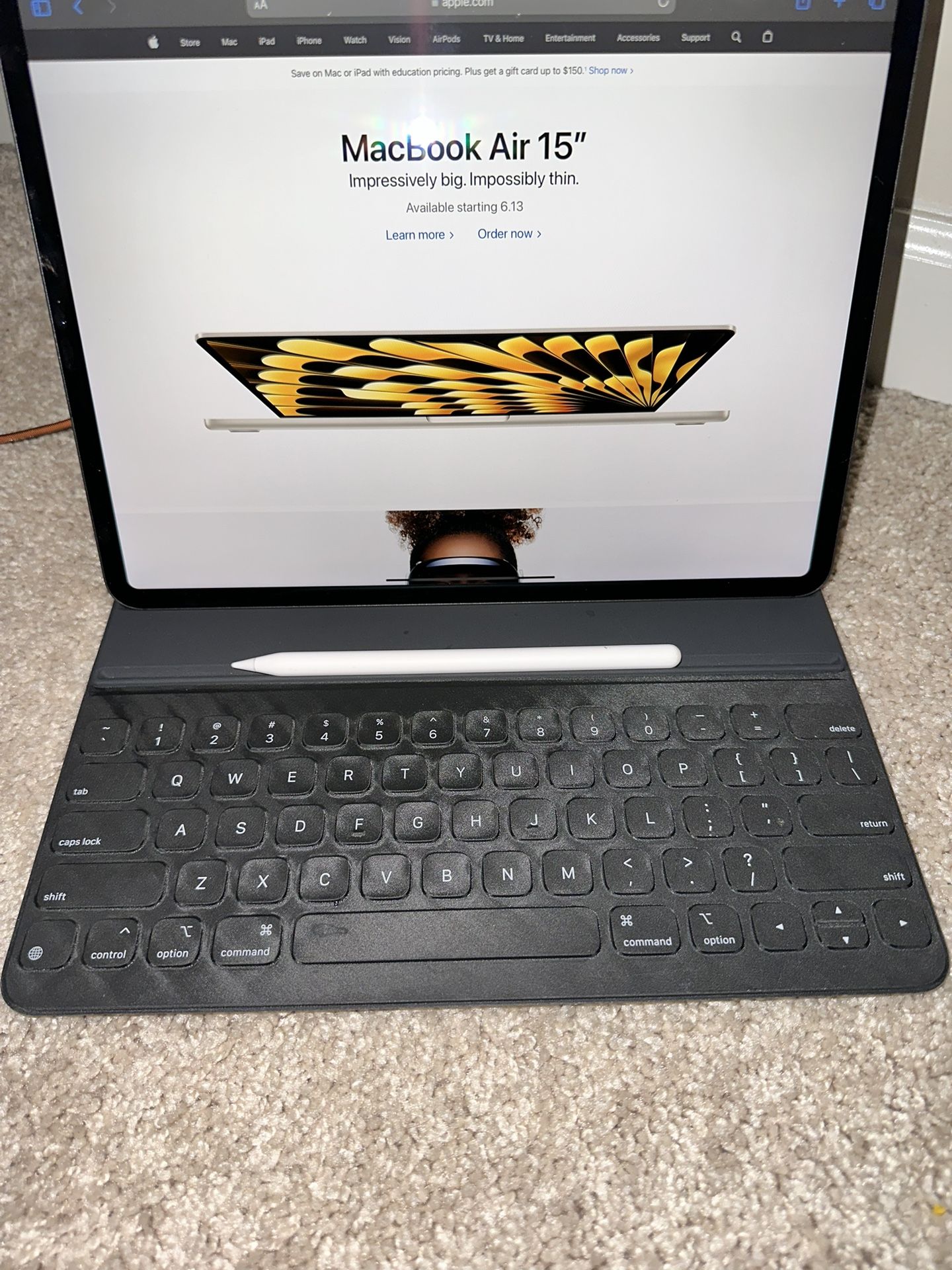 Great condition iPad. Comes with apple pen and keyboard asking $500 No scratches or marks very clean iPad Cellular and Wi-Fi