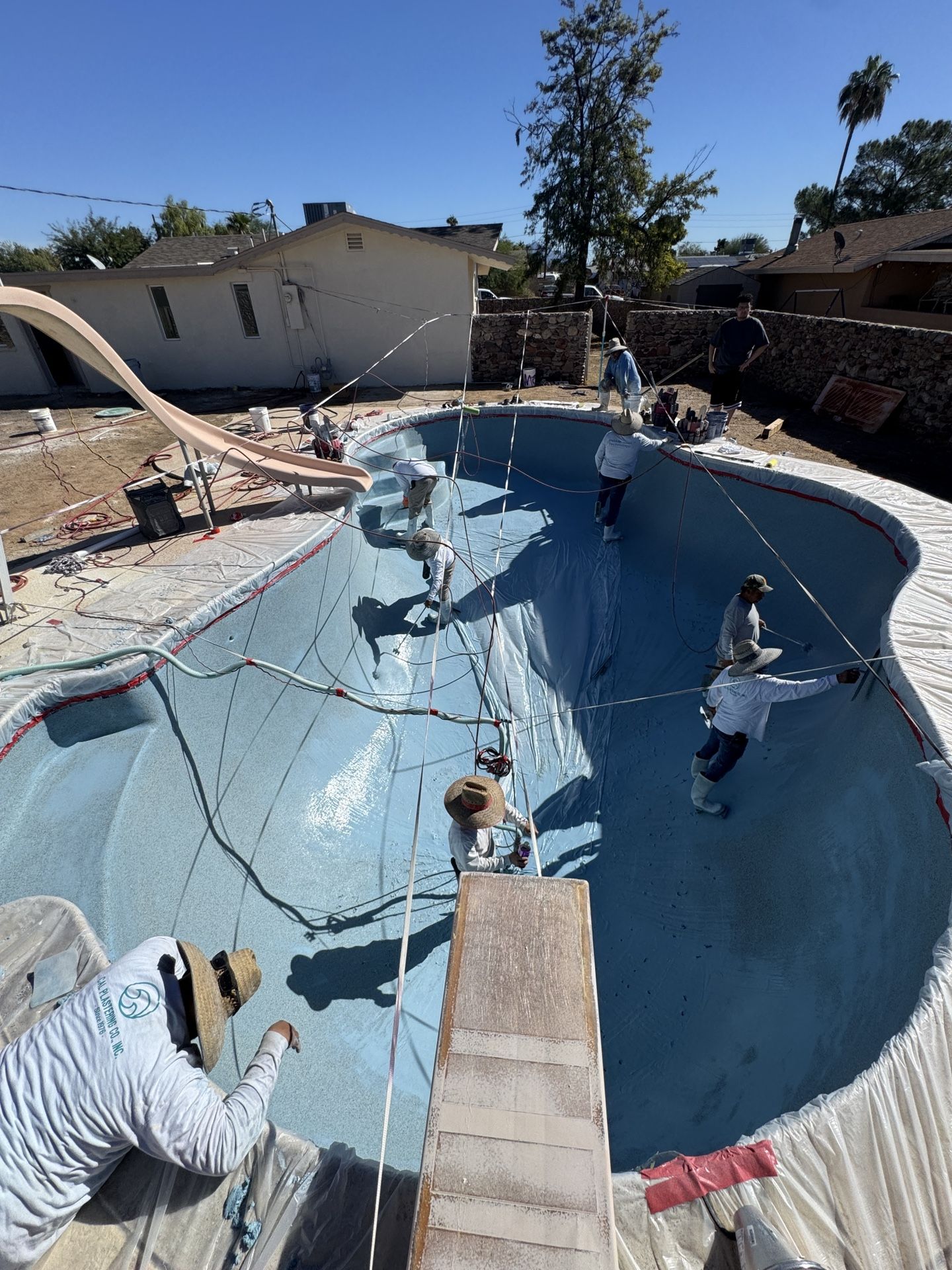 Pool pebble Bobcat Dump trailer Excavator Pool cement Pool rebar Barilla perrona Cemento Concrete pump Shotcrete pump More