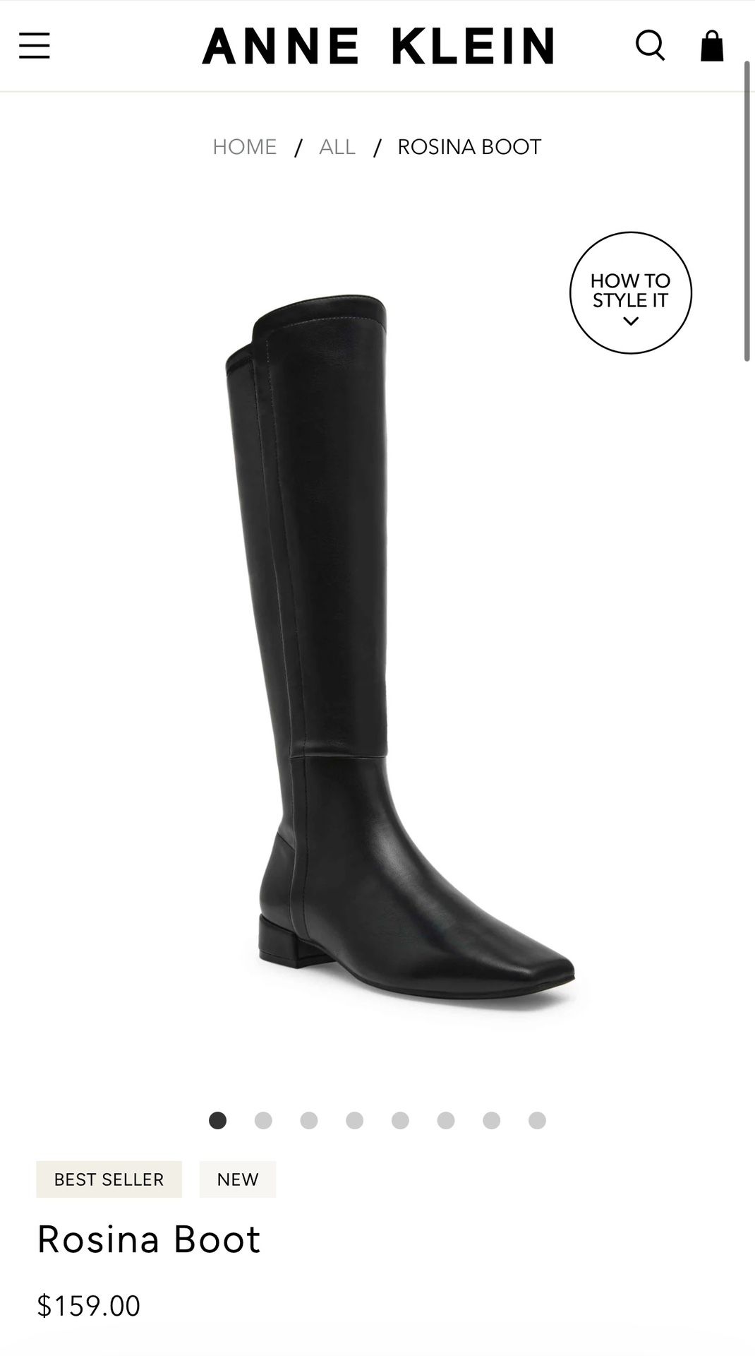 Step out in sleek, timeless style with these Anne Klein Rosina Knee-High Boots in classic Black Smooth. These boots offer a polished look that pairs perfectly with dresses, skirts, jeans, or tailored outfits—ideal for work, casual wear, or nights out. ✨ Condition: Brand new, never worn. The boots were only taken out of the box for photos. The box has minor damage, but the boots themselves are 100% new, clean, and untouched. 💰 Retail Price: $159 🔥 My Price: 50% OFF – Only $80 ⸻ Details • Brand: Anne Klein • Model: Rosina Boot • Color: Black Smooth • Size: 8.5M (Women’s) • Style: Knee-high boot • Heel: Low block heel for comfort and stability • Look: Sleek, modern, and versatile ⸻ Why You’ll Love Them ✔ Elegant knee-high design ✔ Comfortable for all-day wear ✔ Perfect for fall, winter, and everyday outfits ✔ Premium brand at half the retail price ✔ Great for office, casual, or dressy occasions
