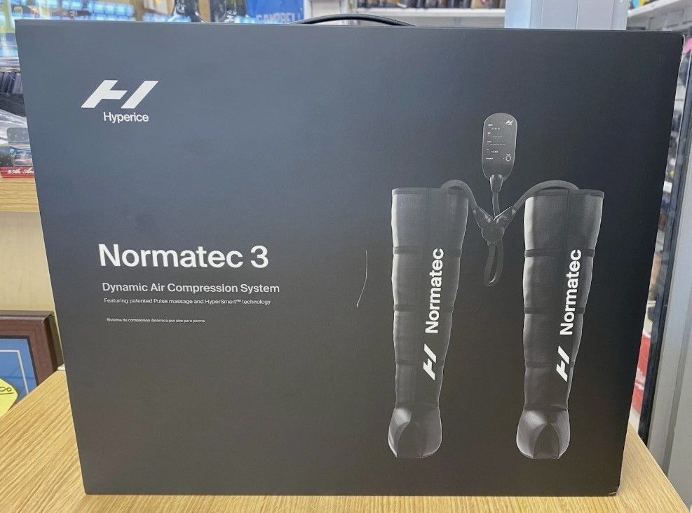 Hyperice Normatec 3 Legs System Black Standard size 5'4" to 6'3" 63010 001-03 Brand New Sealed SALE $599 FIRM CASH OR DEBIT The Normatec 3 by Hyperice is the next evolution of the iconic Normatec series, using dynamic air compression to advance your wellness, recover faster, improve your training, and maximize your performance. Normatec’s patented precision pulse technology helps to increase circulation, revive muscles, and reduce swelling and has long been the choice of elite athletes and consumers throughout the globe. 7 levels of compression and our patented Pulse technology deliver precise treatment to 5 overlapping zones with ZoneBoost by using biomimicry to replicate the natural muscle pumps and one way valves of the legs. Trust us, your legs will thank you.