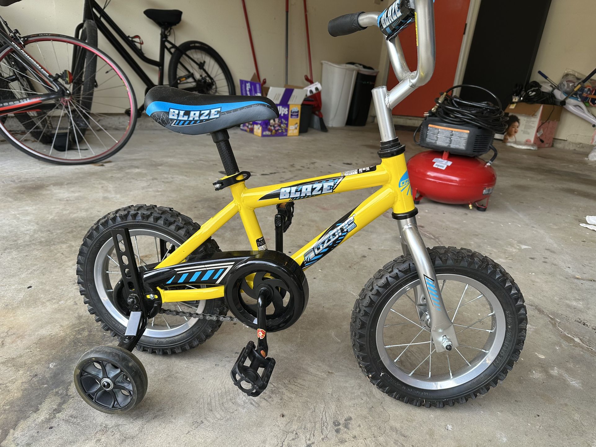Brand New 12” toddler bike with trailing wheels. ($80 at Academy Sports)