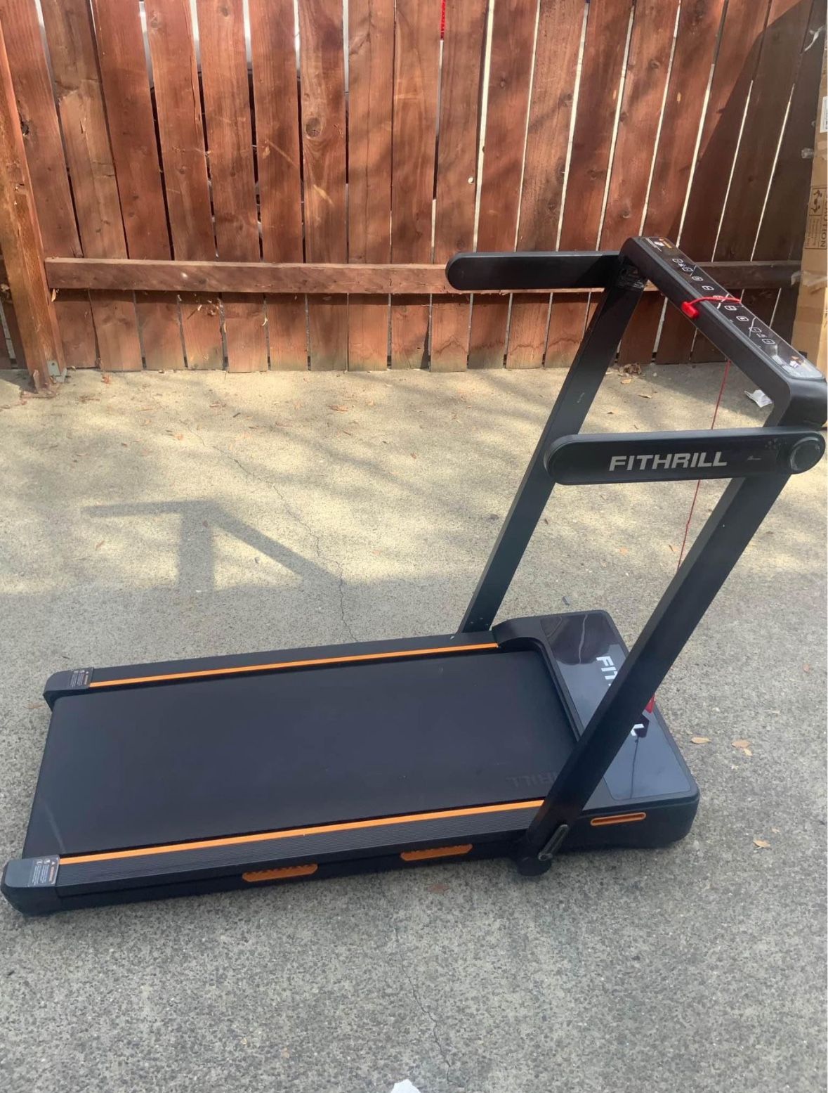 Fithrill Treadmill, great for home workouts, maximum speed 7,6 mph, so great for running, incline does not work, one side goes up but one side doesn’t still runs great, box damage, let me know for more questions.