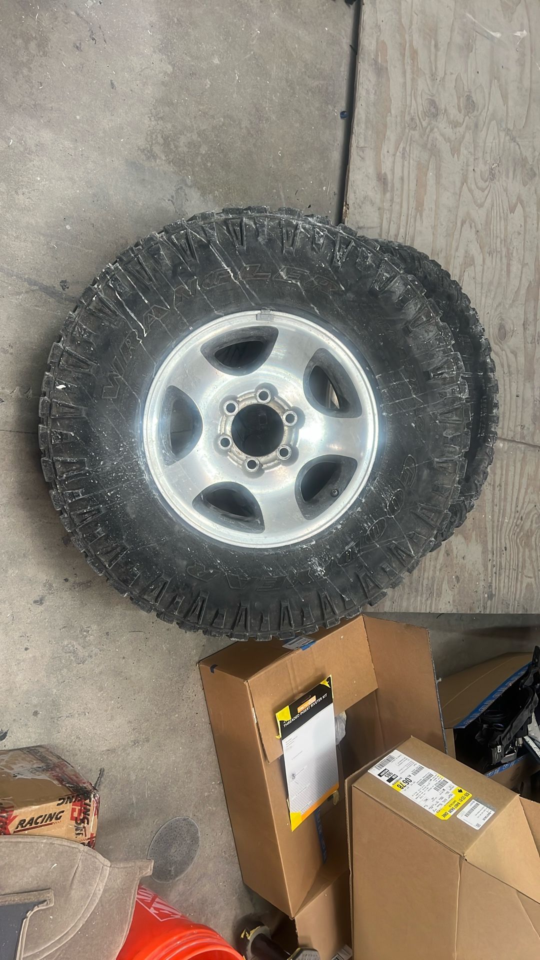 Five Toyota wheels with tires, Goodyear Wrangler DURATRAC brand (contact info removed)s in really good condition