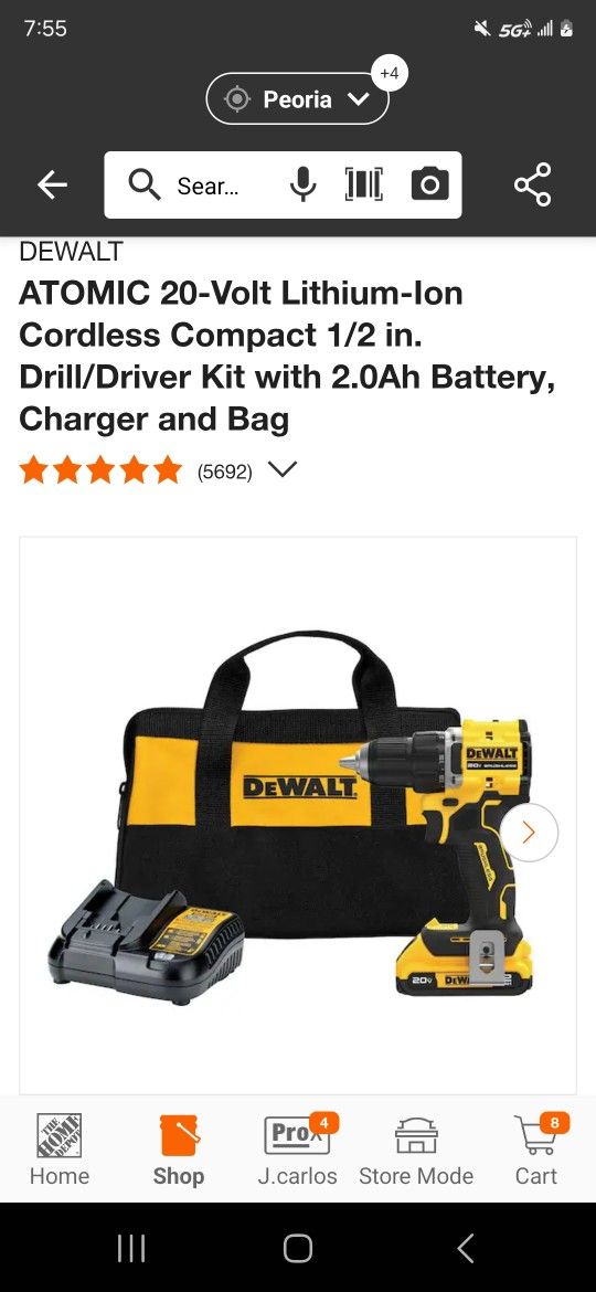 DEWALT ATOMIC 20-Volt Lithium-Ion Cordless Compact 1/2 in. Drill/Driver Kit with 2.0Ah Battery, Charger and Bag