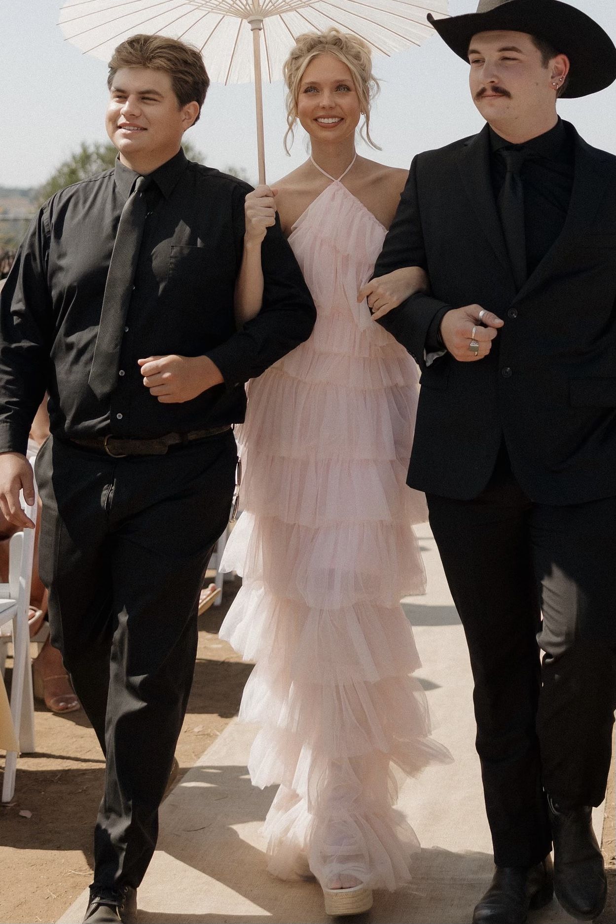 Soft pink ruffle dress. Halter neck. Brand is MABLE. Size Medium. Perfect for weddings, dances, events. Only worn 1 time!
