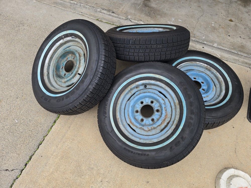 5 wheels with tires, hub caps are sold separately tires have approximately 200 miles on them P225/75/15