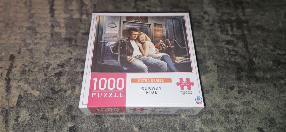 The James Dean & Marilyn Monroe “SUBWAY RIDE” 1000pc Puzzle is a colorful and engaging puzzle featuring iconic images of the star actors. With 1000 interlocking pieces, this puzzle is designed to challenge and entertain puzzle enthusiasts of all ages, from 8 and up. The recommended age range spans across different age levels, making it suitable for a wide range of individuals who enjoy a good jigsaw puzzle. The puzzle showcases the theme of the “SUBWAY RIDE” scene from James Dean & Marilyn Monroe, offering a unique and captivating experience for fans of the celebrity couple.