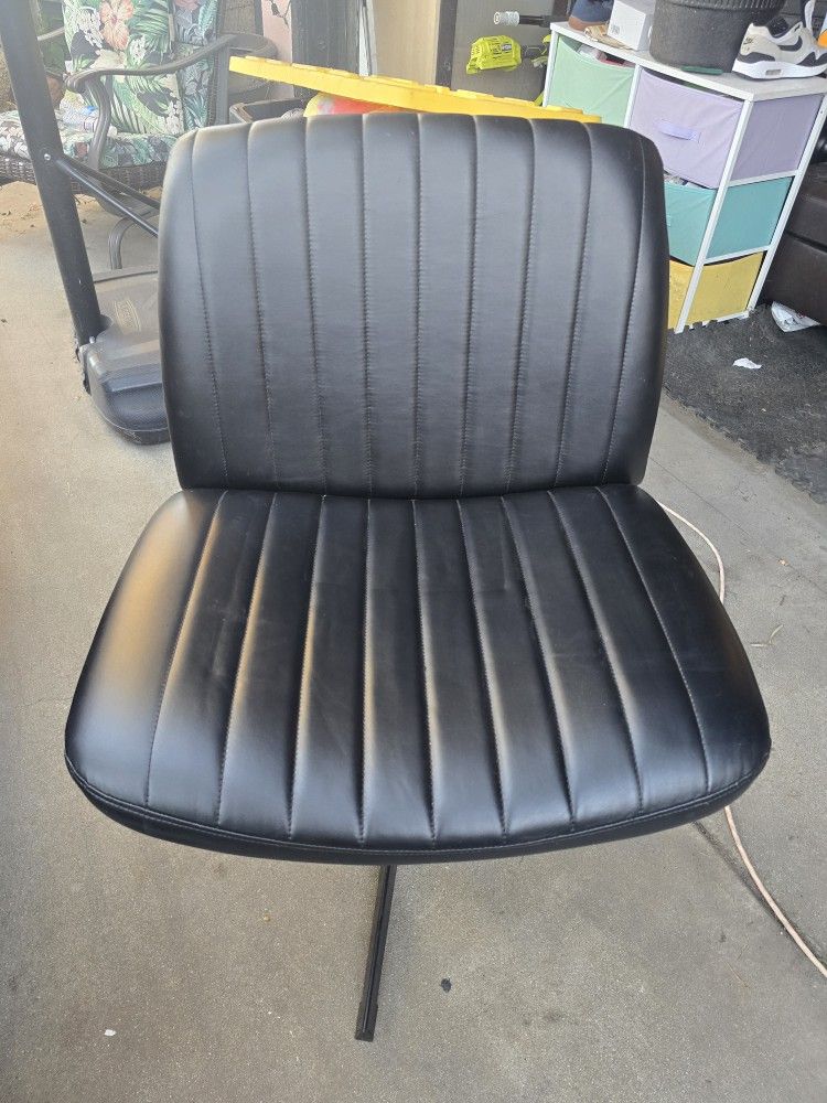 Faux leather chair. Very comfortable, has wear and tear. Let me know if interested.