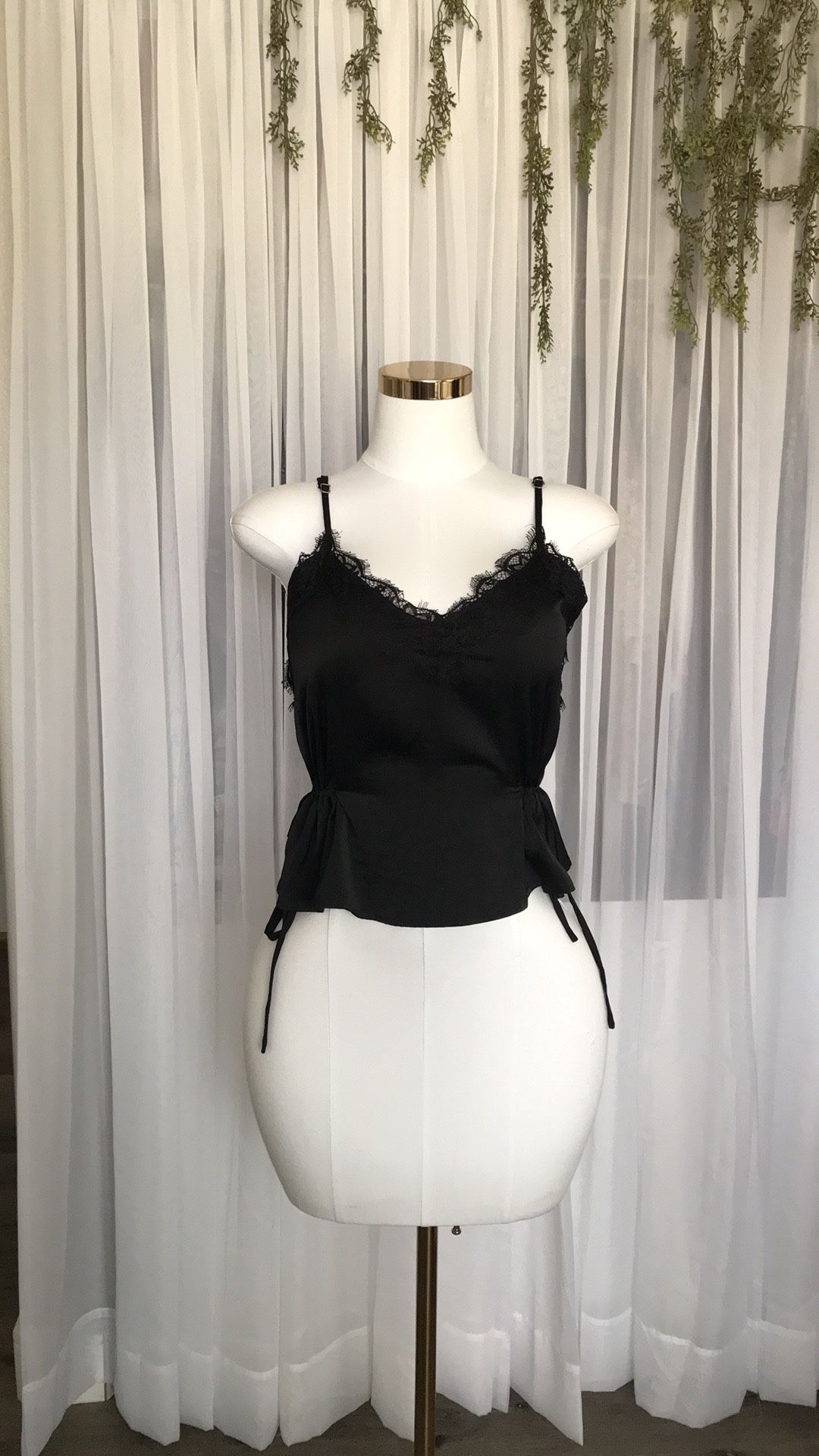 Side Tie Satin Lace Trim Top Size S