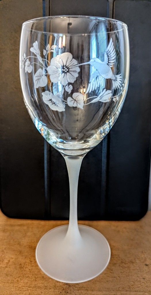 Beautiful Vintage Etched Hummingbird Stemware 8 pieces