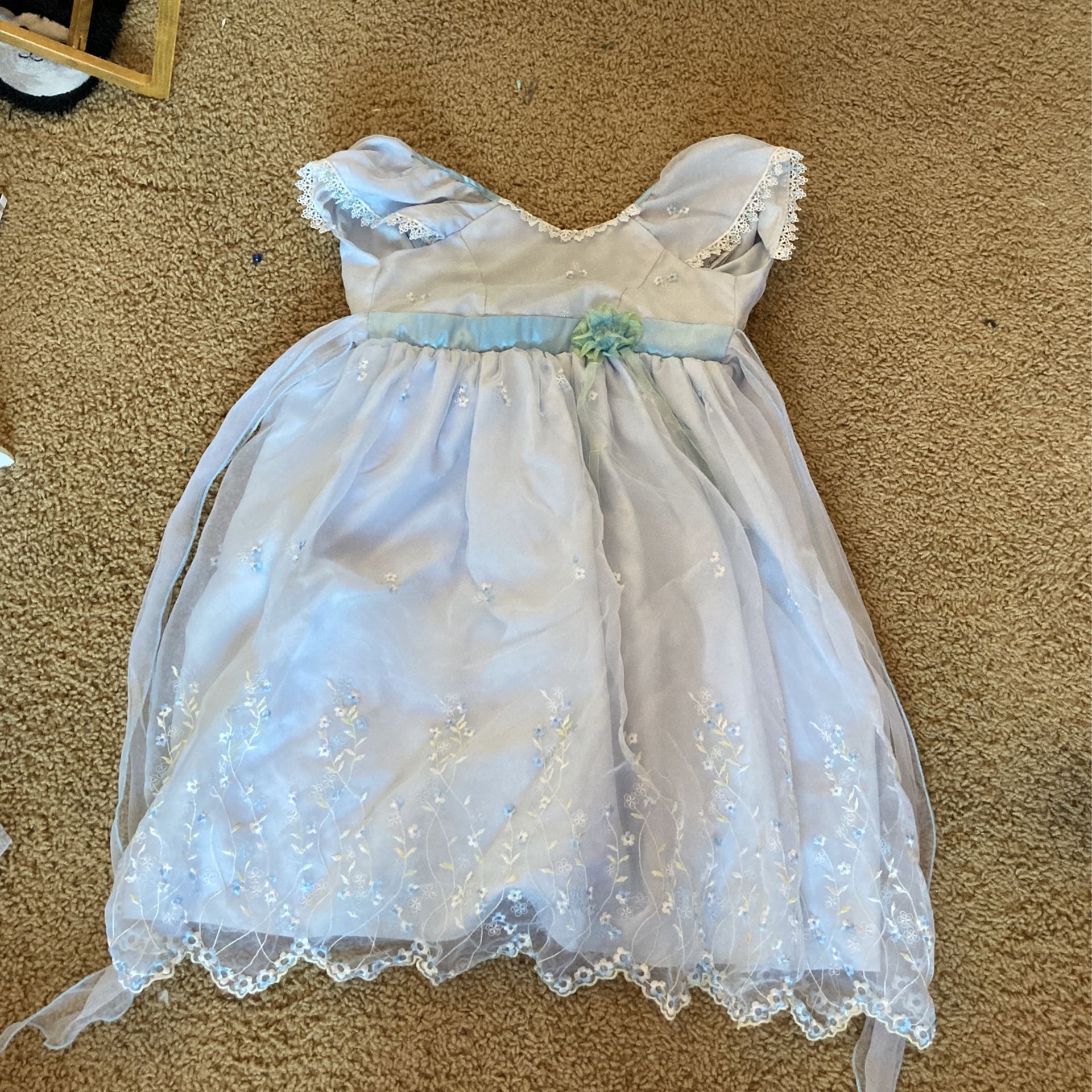 Beautiful blue Cinderella inspired princess gown! Has a few missing sequins on the sleeves, And one missing button which is not noticeable when the sash is tied!Otherwise in good condition! Three layer gown!! Perfect little princess!