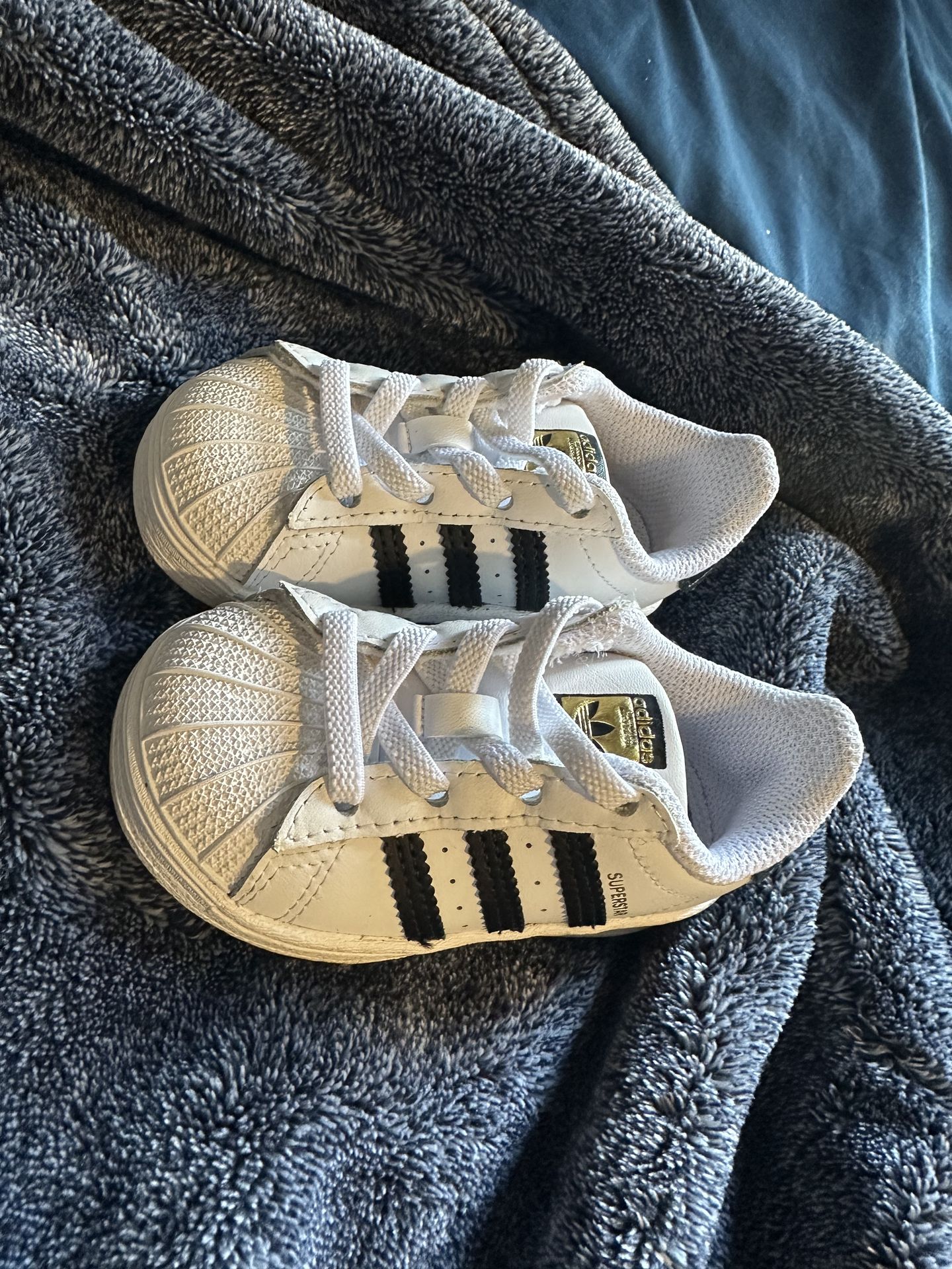 Adidas superstars are a size 5 Brand new never worn Price: $10 Winnie the Pooh Shoes barely used but is very good condition also size 5 Price: $6 Or take both pairs for $12 Also have a lot of baby clothes/ items barely used or not touched at all. Please message me if in need.