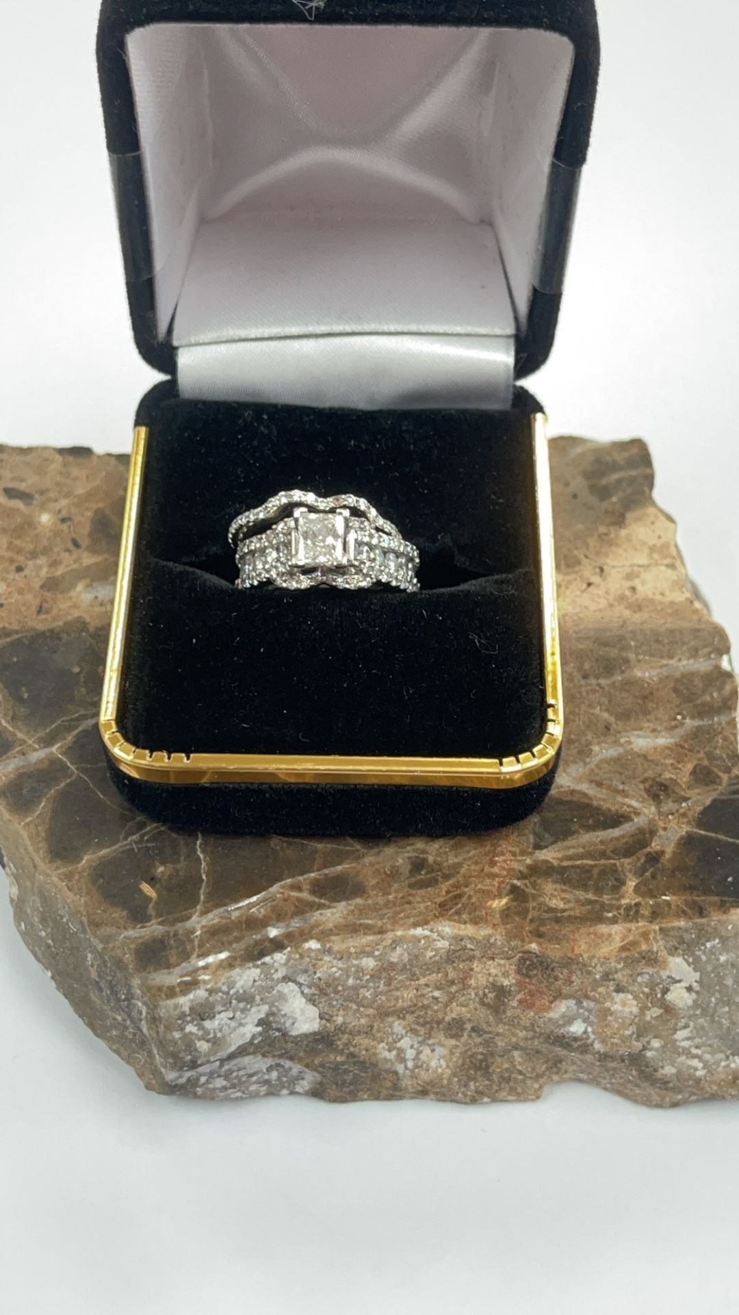 I have this nice lady’s set for sale beautiful it’s a total of 1.25ct total diamond weight it is missing a small diamond asking 2000 obo no trades credit card payment accepted se abla espanol