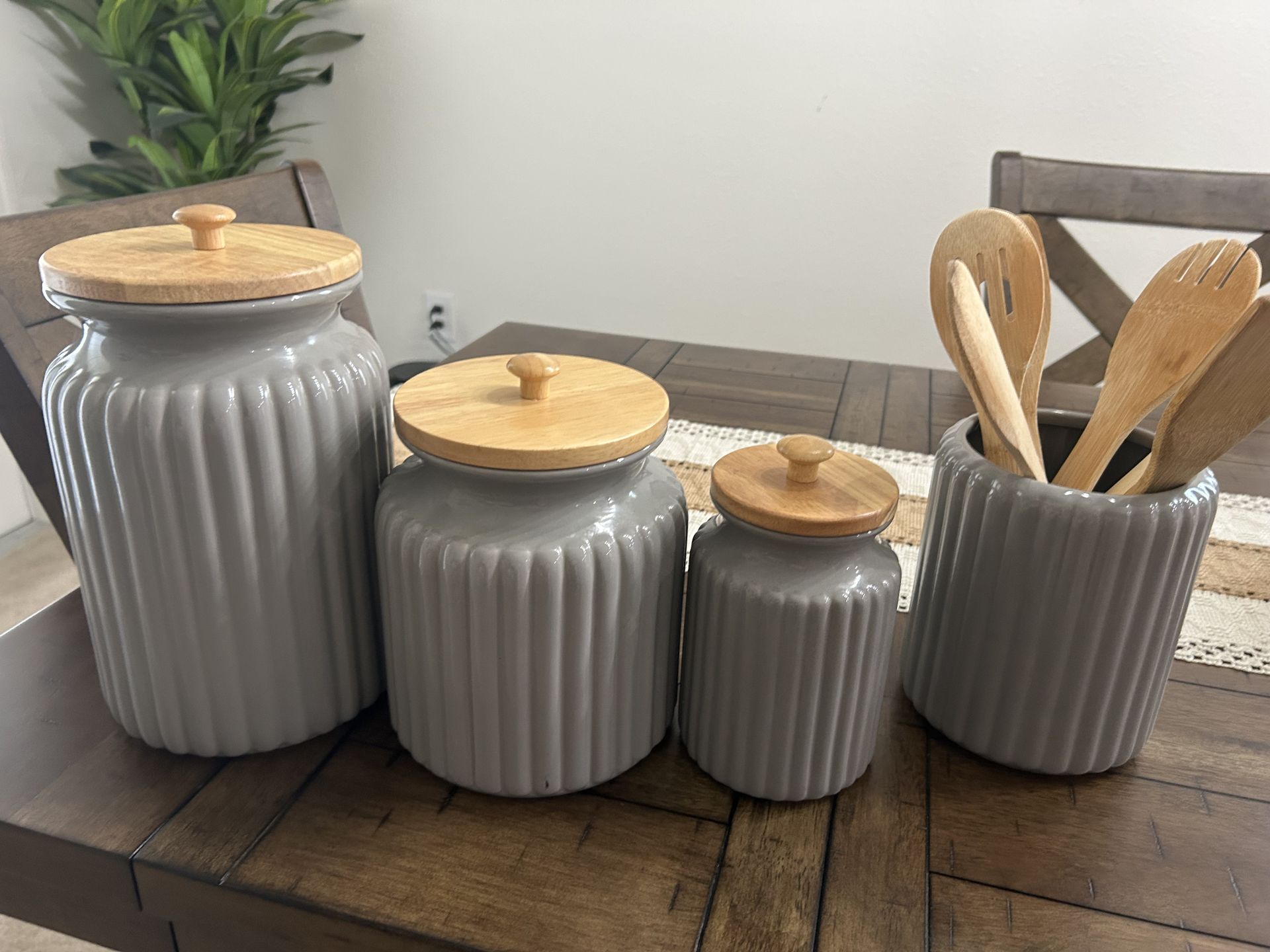 Gray ceramic canister set with utensil holder