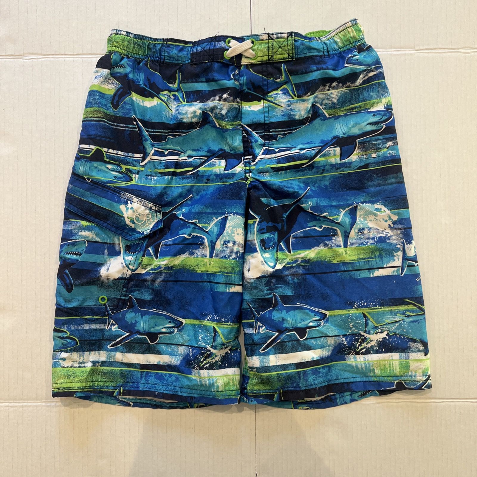 OP Swim Trunks Boys XL 14/16 Blue Shark Print Board Shorts Mesh Liner