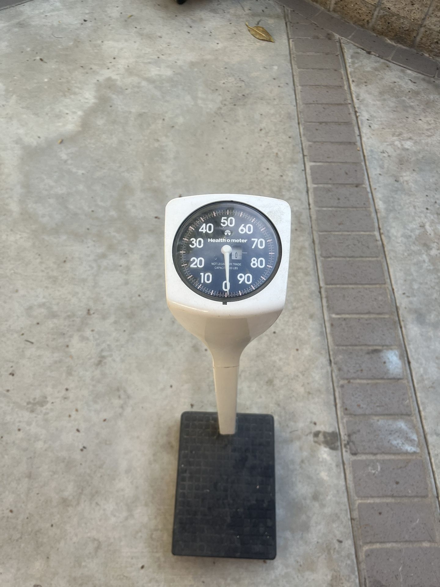 It has a 300 LBS Capacity. The scale has been tested and is working properly. This item is in very good preowned condition with minimal wear from light use and storage. See pictures for details, message with any questions.