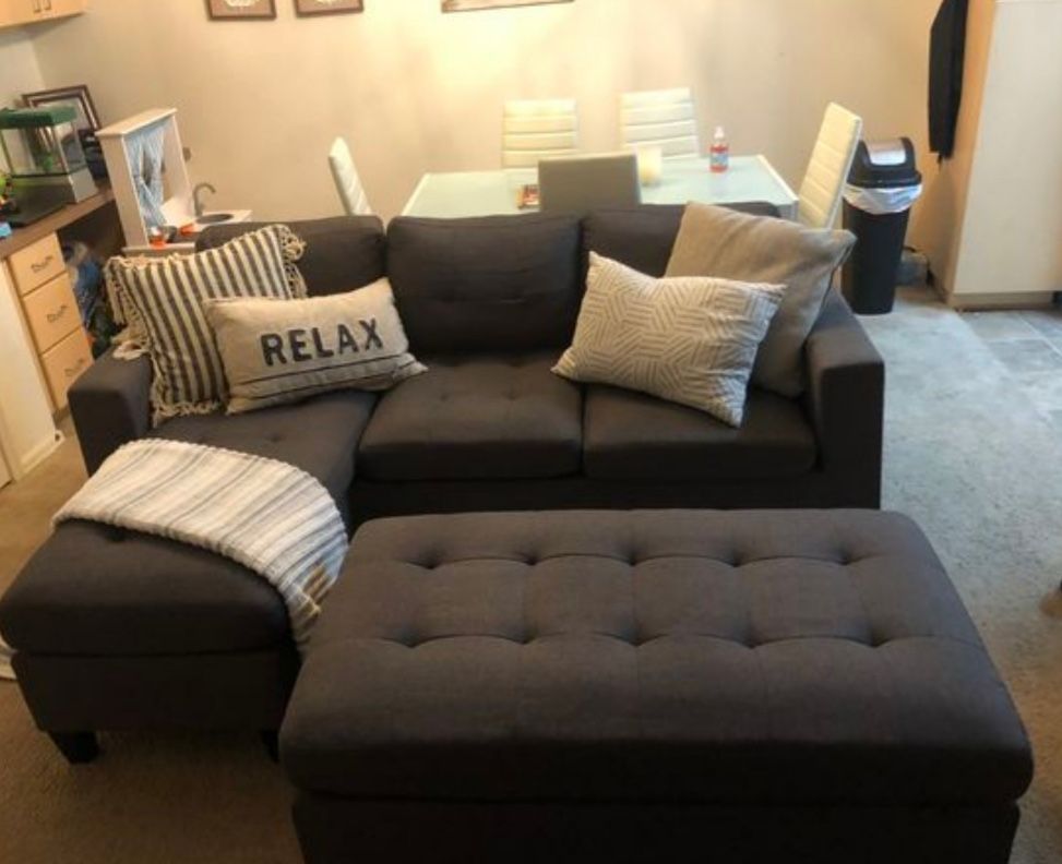 L Shape Sectional Sofa Couch With Ottoman (Available For Same Day)