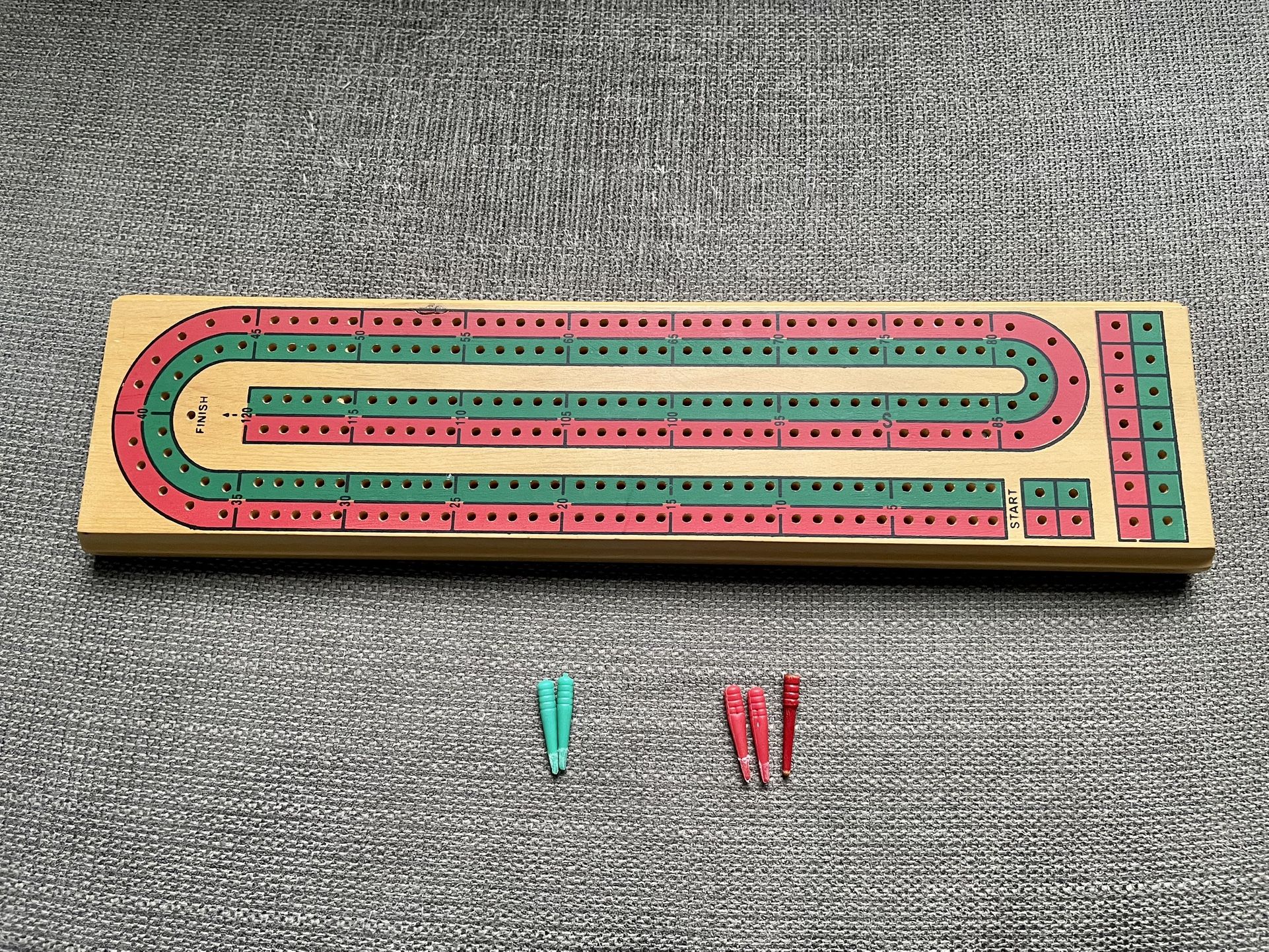 Vintage 2 Track Wooden Cribbage Board (Red/Green Stripe)