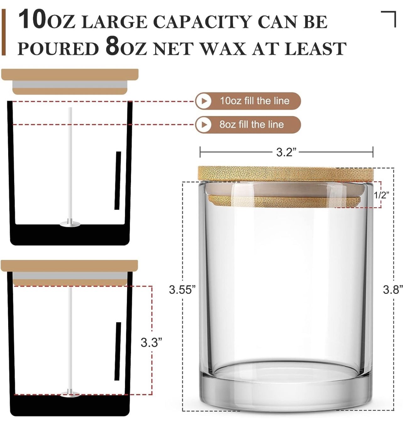 16 Pack, 10 OZ Thick Glass Candle Jars with Bamboo Lids - Bulk Clear Empty Glass Candle Jars for Making Candles - Spice, Powder Containers