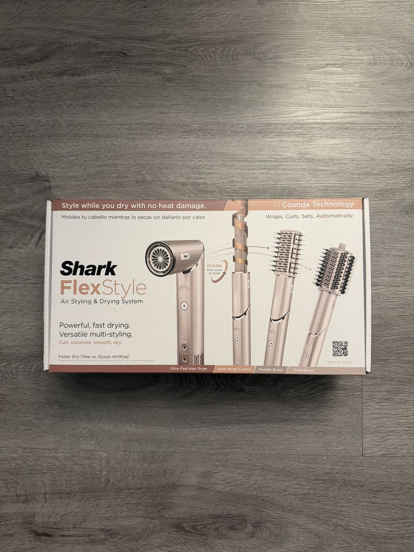 Style with no heat damage, 4 attachments: Blow dryer, Auto wrap curls, Paddle brush, and oval brush. Brand new hasn’t been opened.