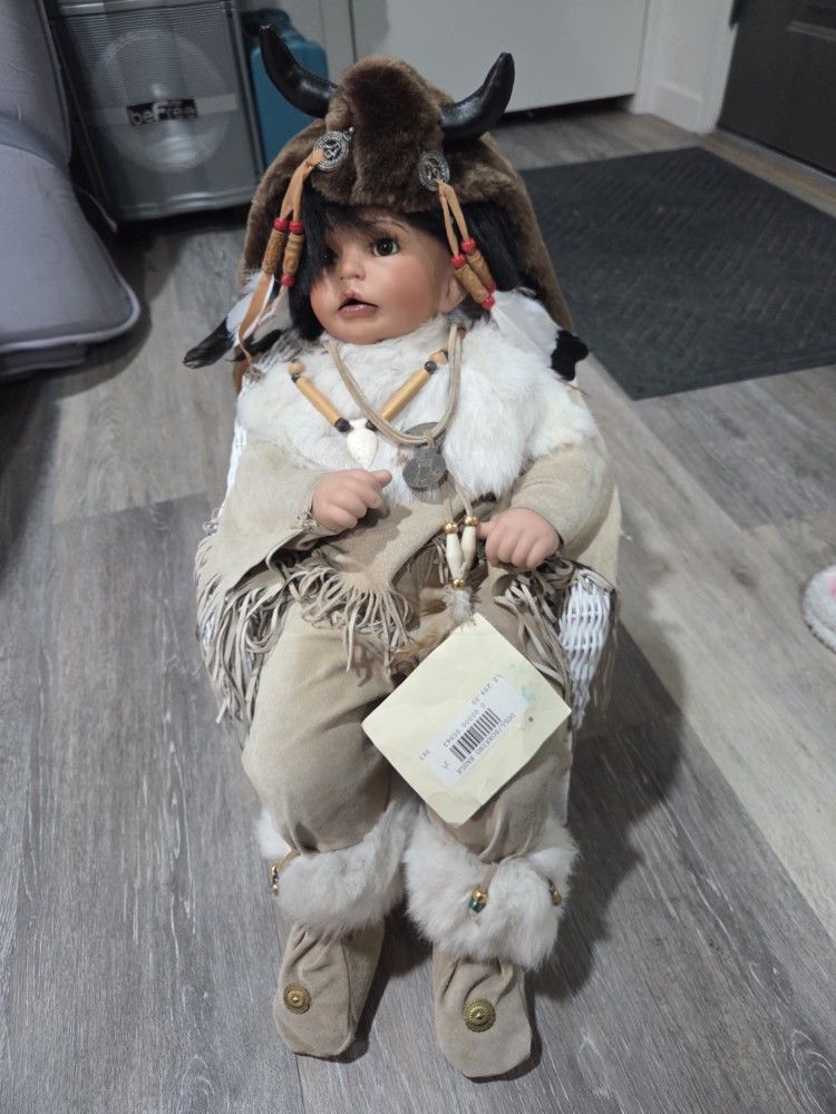 Terris Porcelian Dolls 1997 Soaring Eagle 56 out after 500 Made with rabbit fur and Leather 100$ firm on price Pick up Turlock Cash,venmo,zelle Collection, collectors, toys, dolls Native, antiques, porcelain
