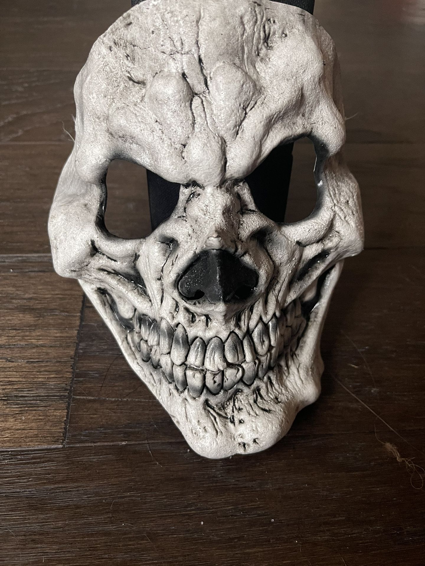 Latex skull mask. Adult sized. All masks are new and have been stored in a sealed tub in a temperature controlled unit.